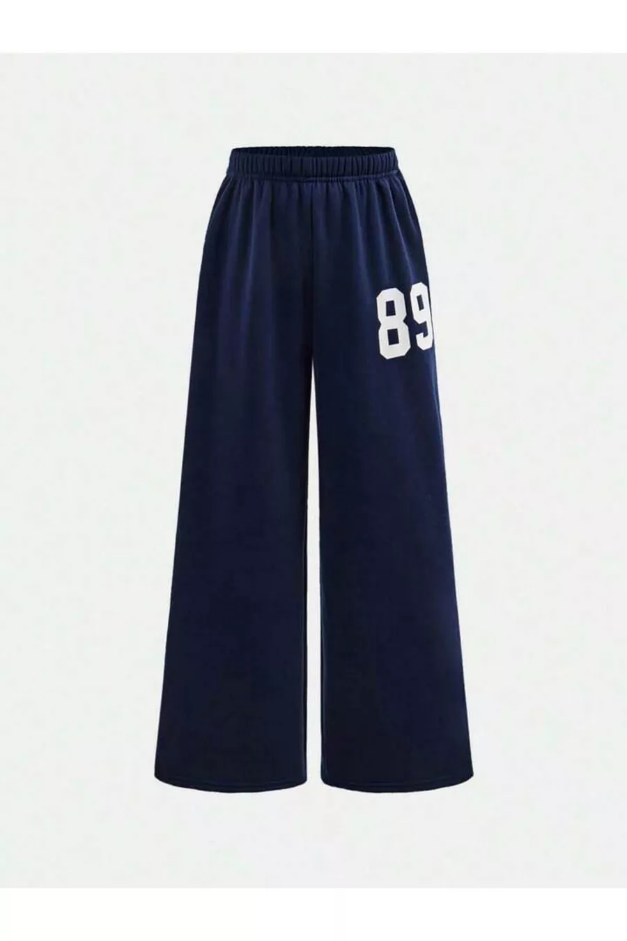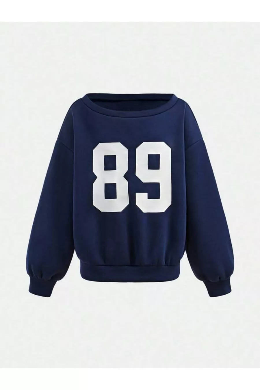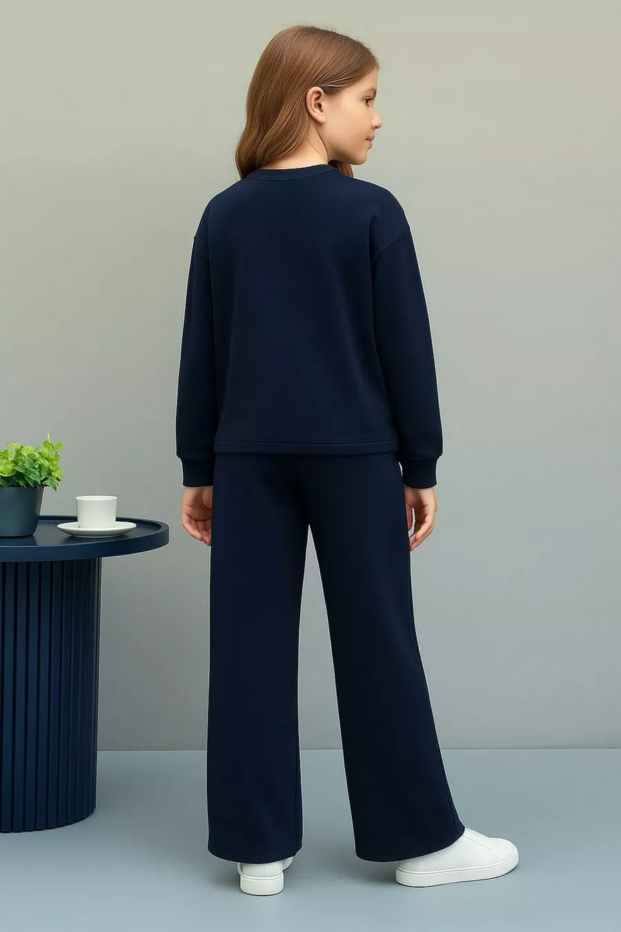 Ensemble de survêtement fille Sweat-shirt à col rond imprimé bleu marine - Coupe ample, bleu marine