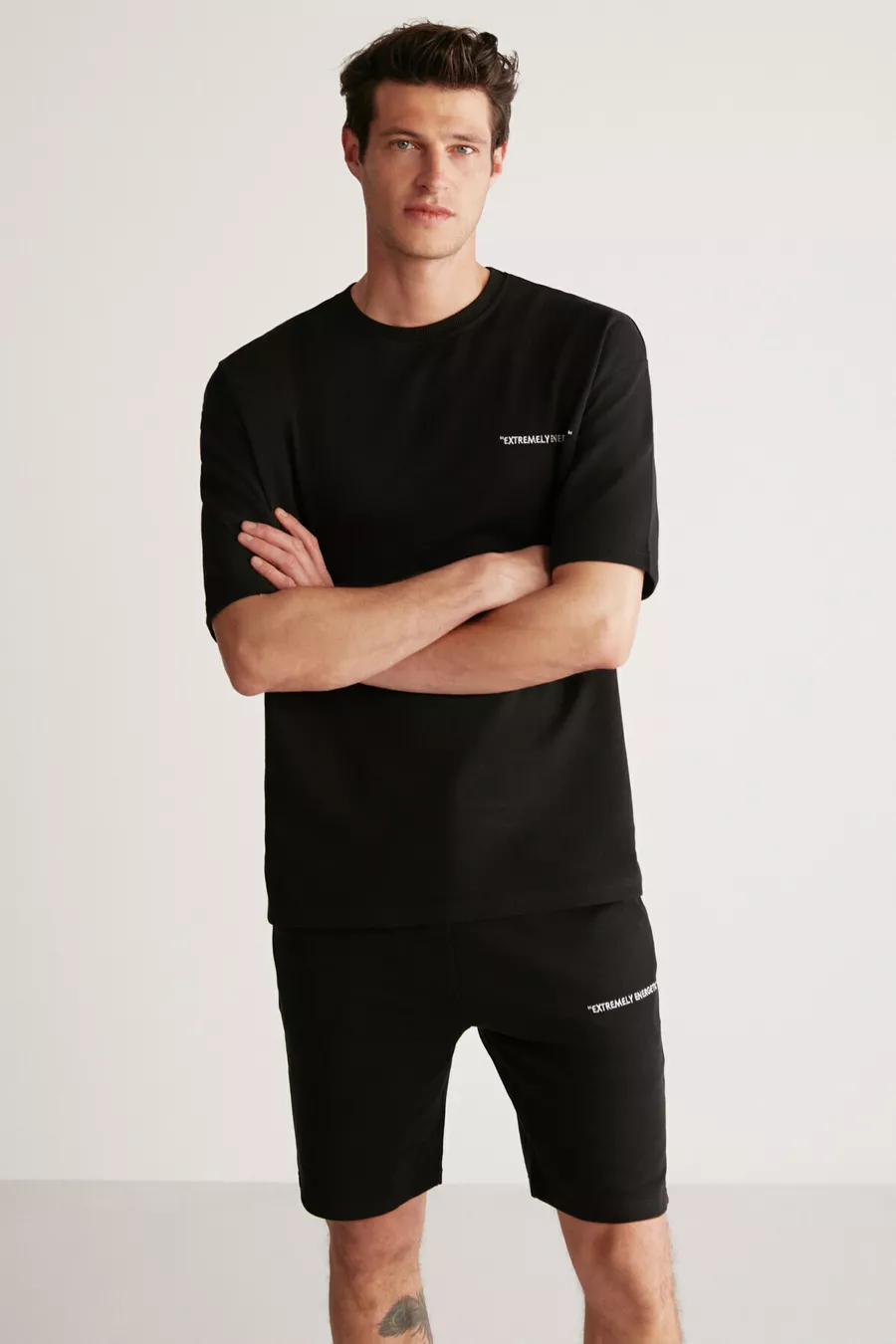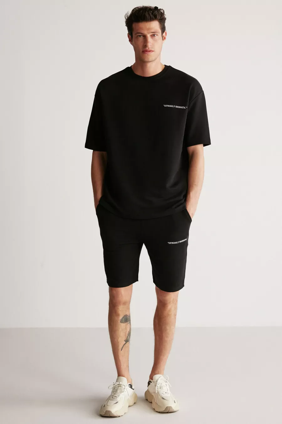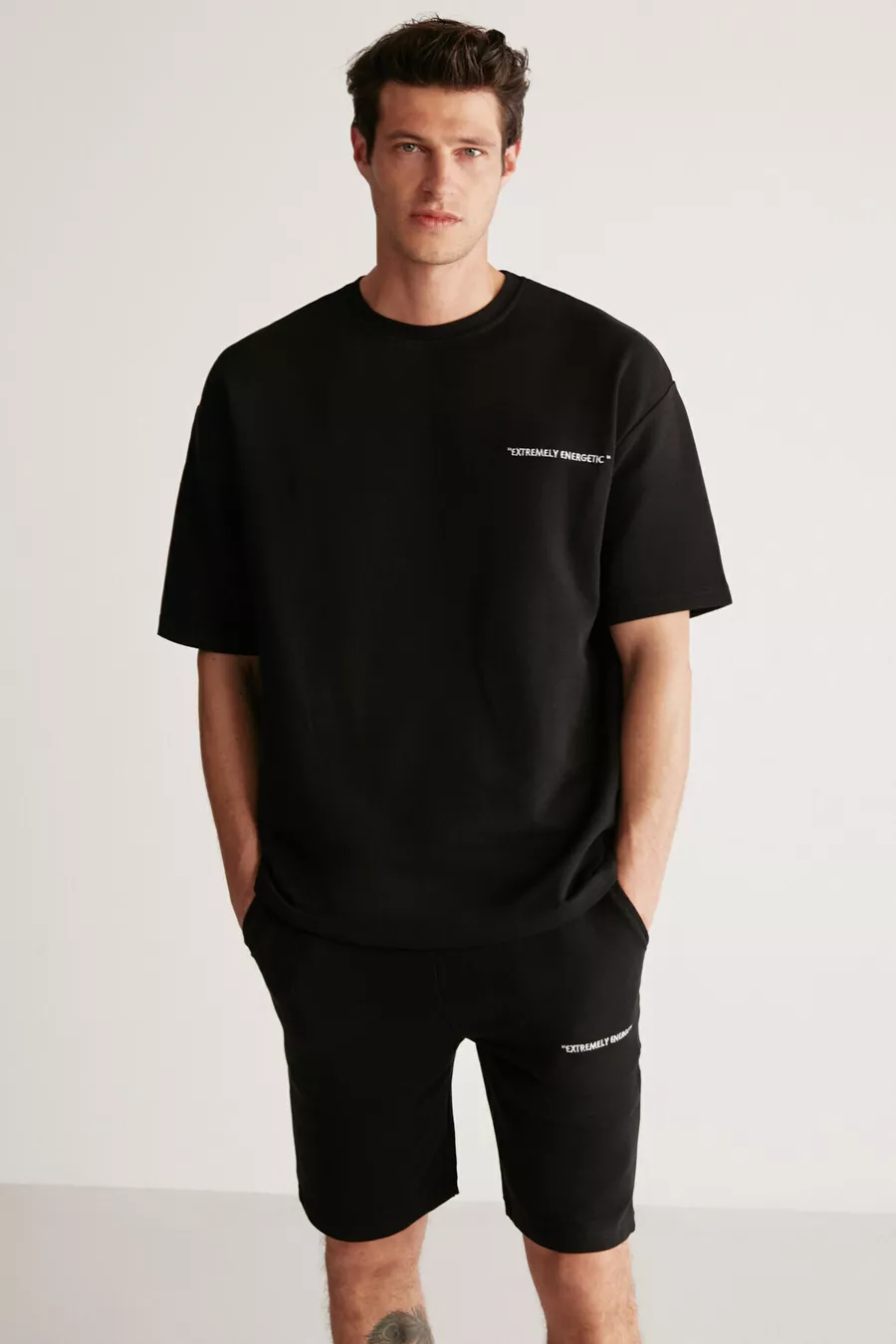 Ensemble de survêtement pour homme Colombie, lot de 2, coupe confortable, broderie de texte, sans cordon, noir