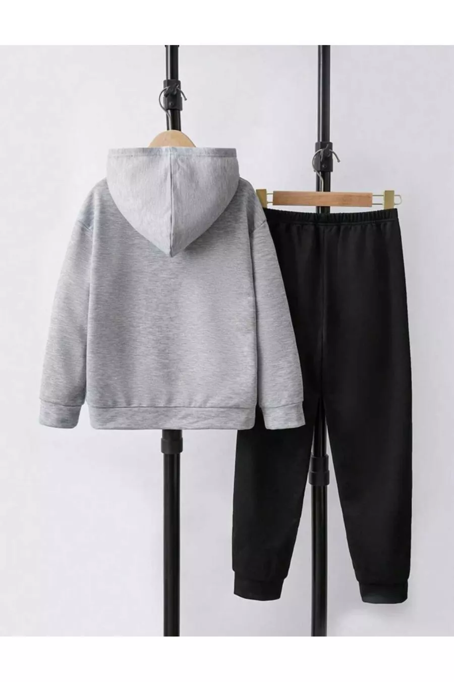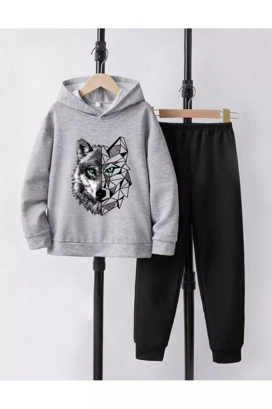 Ensemble de survêtement gris et noir avec imprimé loup pour garçon/fille