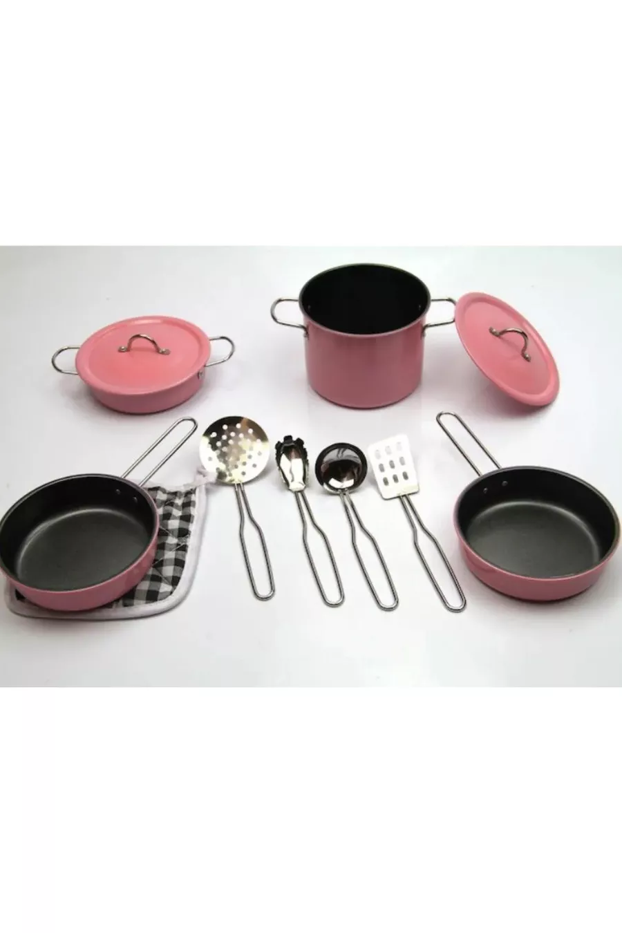 Ensemble de casseroles et poêles en acier inoxydable rouge pour enfants éducatif
