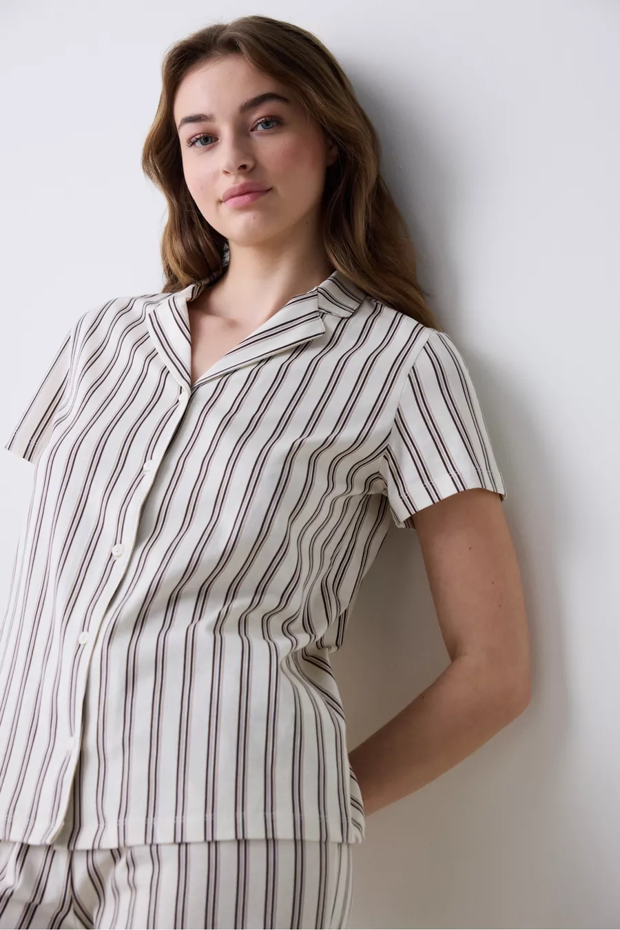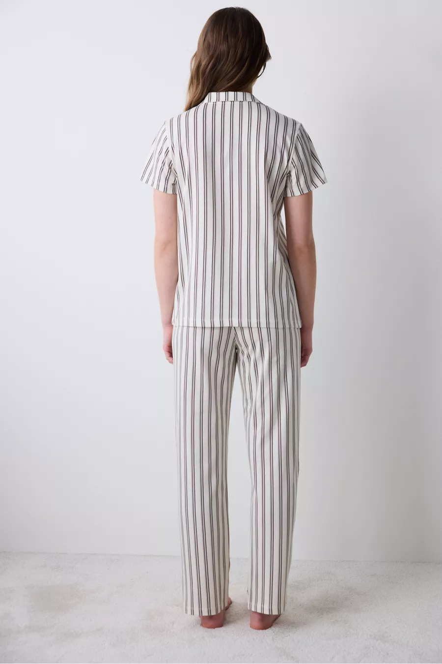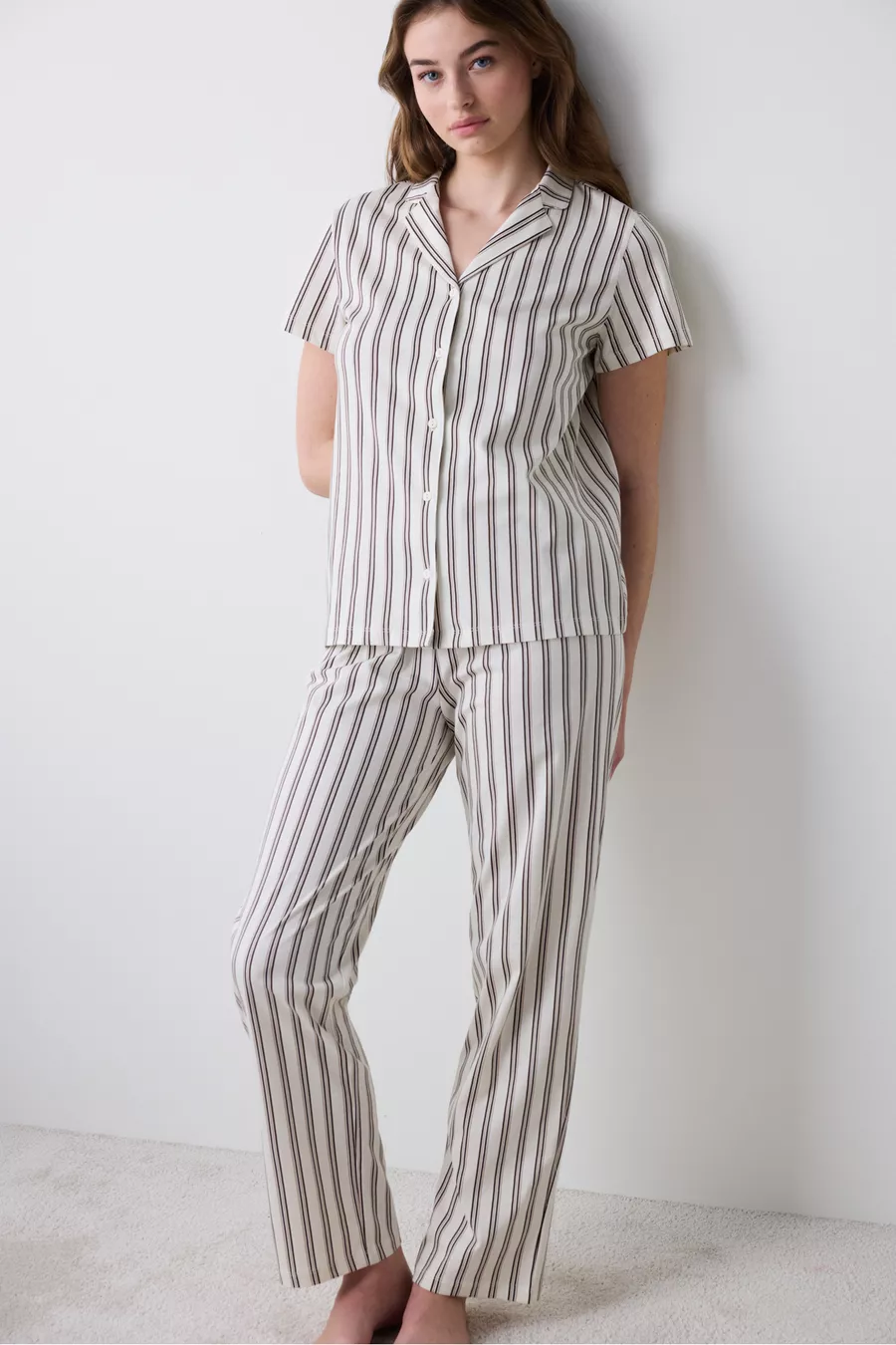 Ensemble de pyjama en coton écru chemise et pantalon Open Mind