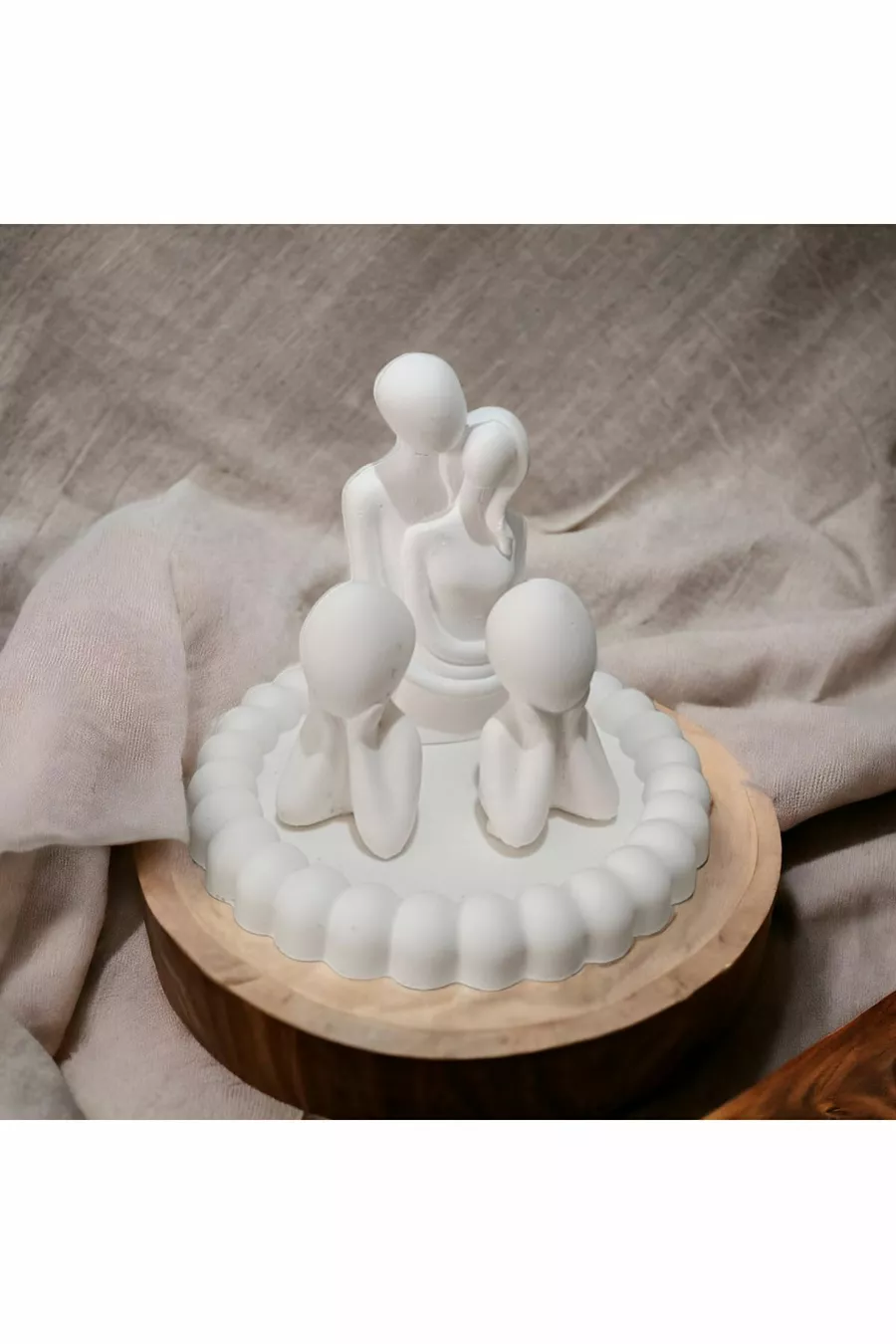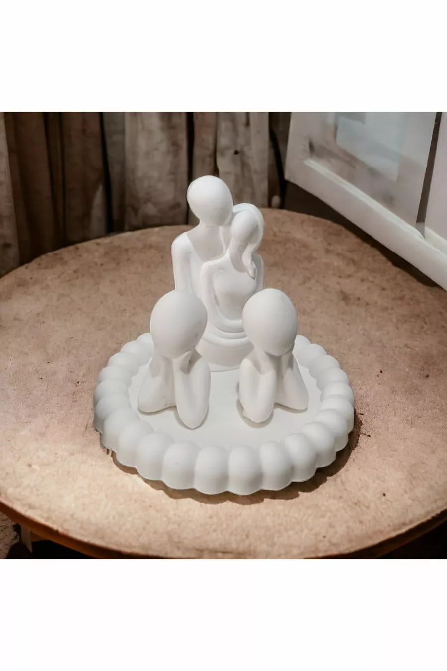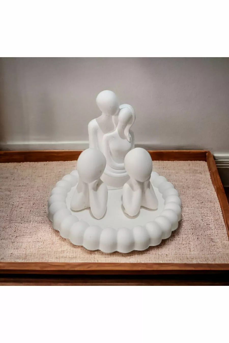 ENSEMBLE DE FIGURINES FAMILIALES AVEC DEUX ENFANTS ET ASSIETTES BUBLES, 5 PIÈCES, ASSIETTE DOUBLE CM