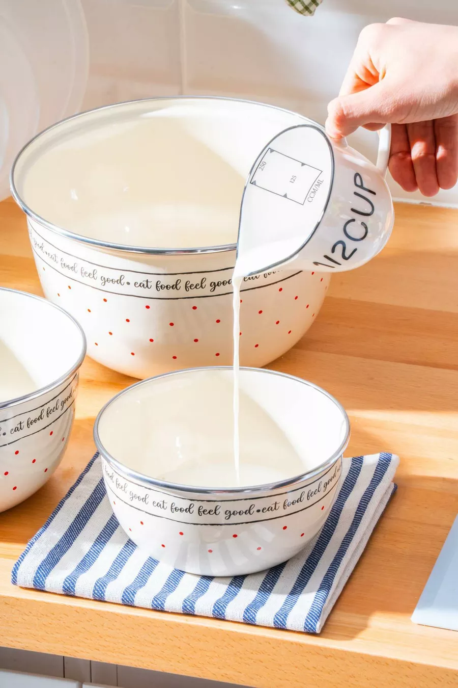 Matériau : Émail Nombre de pièces : 6 Couleur : Beige Volume : 1 - 2 L Origine : TR Instructions d'entretien (contact alimentaire) : Doit être lavé à la main. Symbole de contact alimentaire : Oui