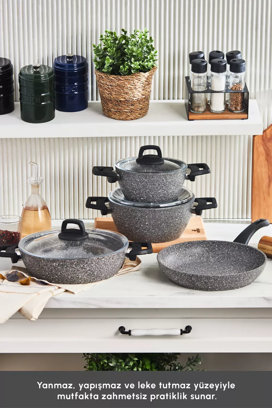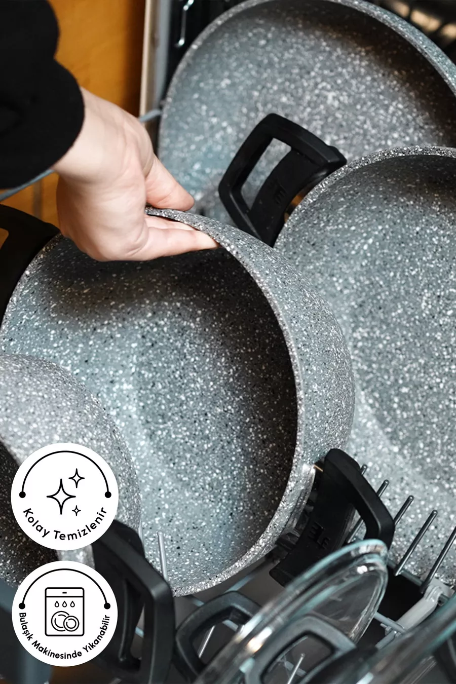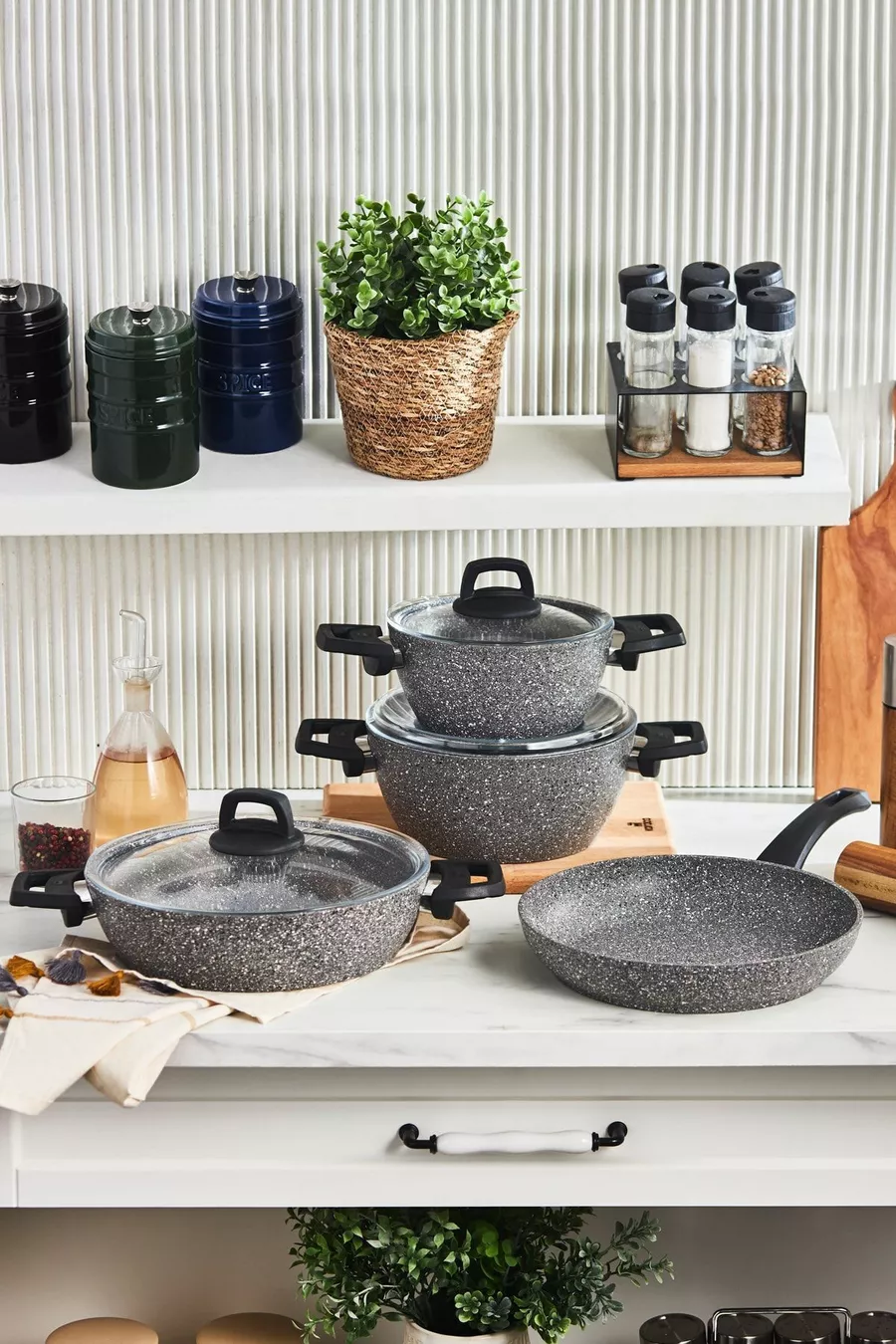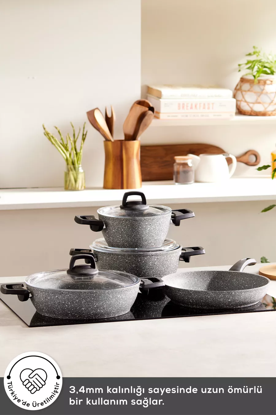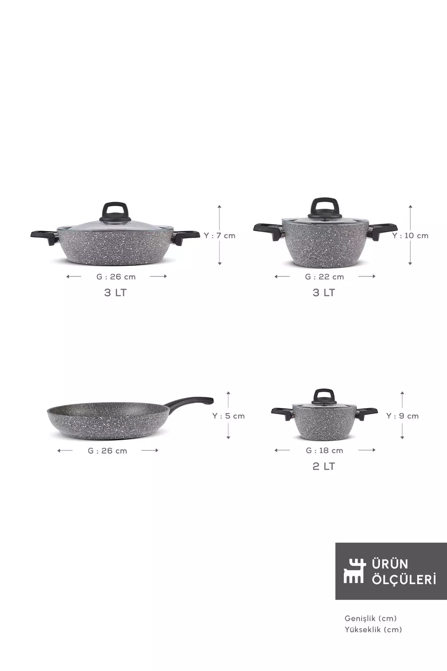Couleur : Gris Caractéristique : Base antiadhésive Matériau extérieur : Granite Matériau intérieur : Granite Nombre de pièces : 7 Origine : TR Matériau : Granite