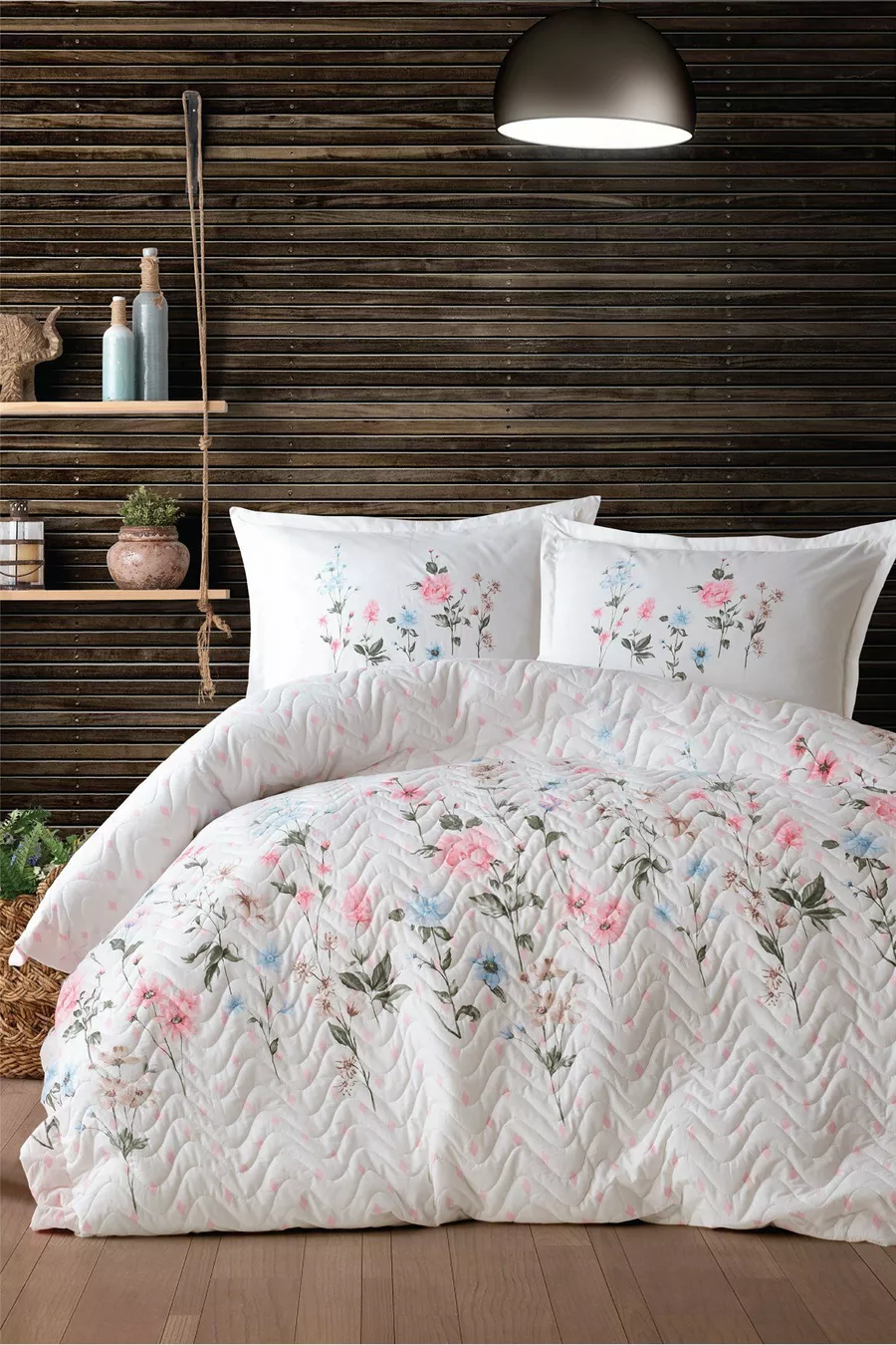 Ensemble de housse de couette matelassée quatre saisons rose pour lit double Palitra