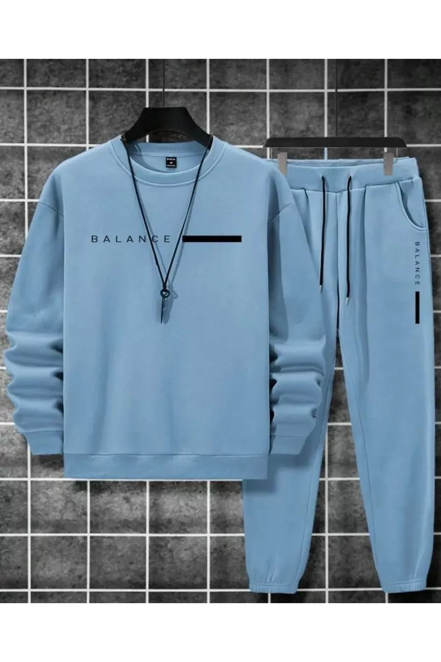 Ensemble de survêtement garçon bleu à imprimé Balance, oversize, col rond