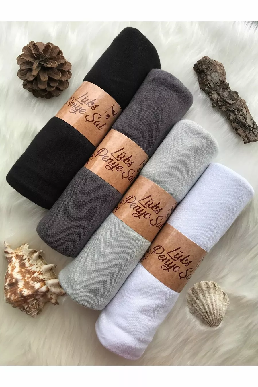 Ensemble de 4 châles en jersey (NOIR - GRIS FONCÉ - GRIS CLAIR - BLANC)