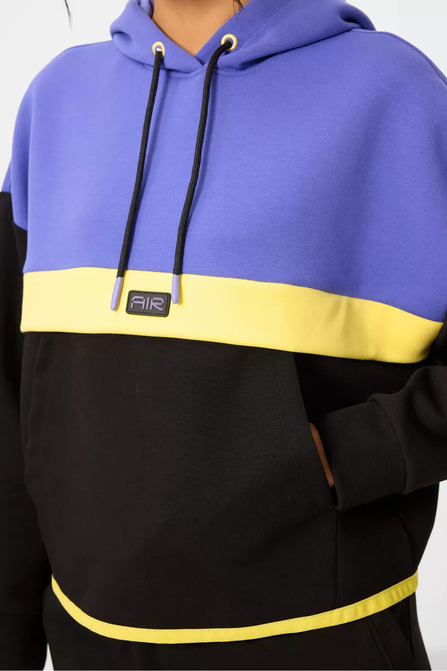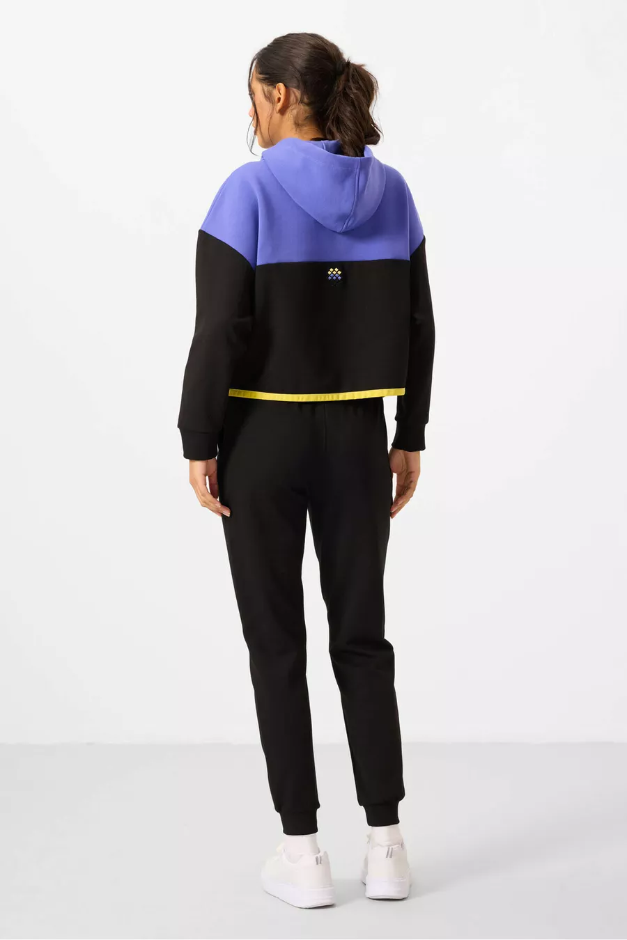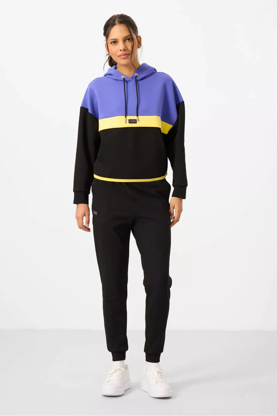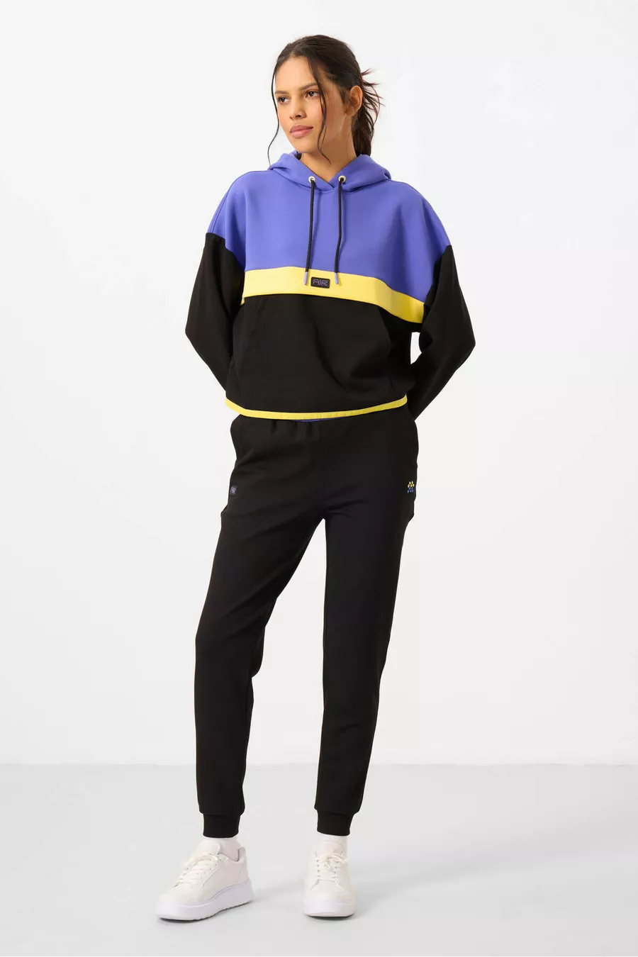 Ensemble de survêtement pour femme en coton à capuche noire et blocs de couleurs -