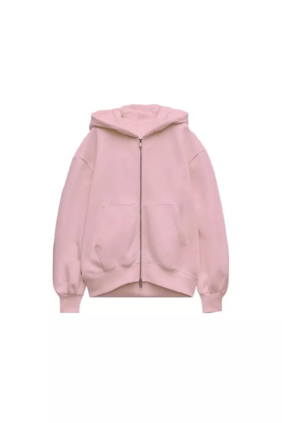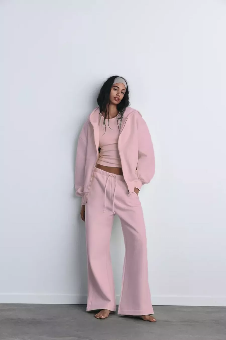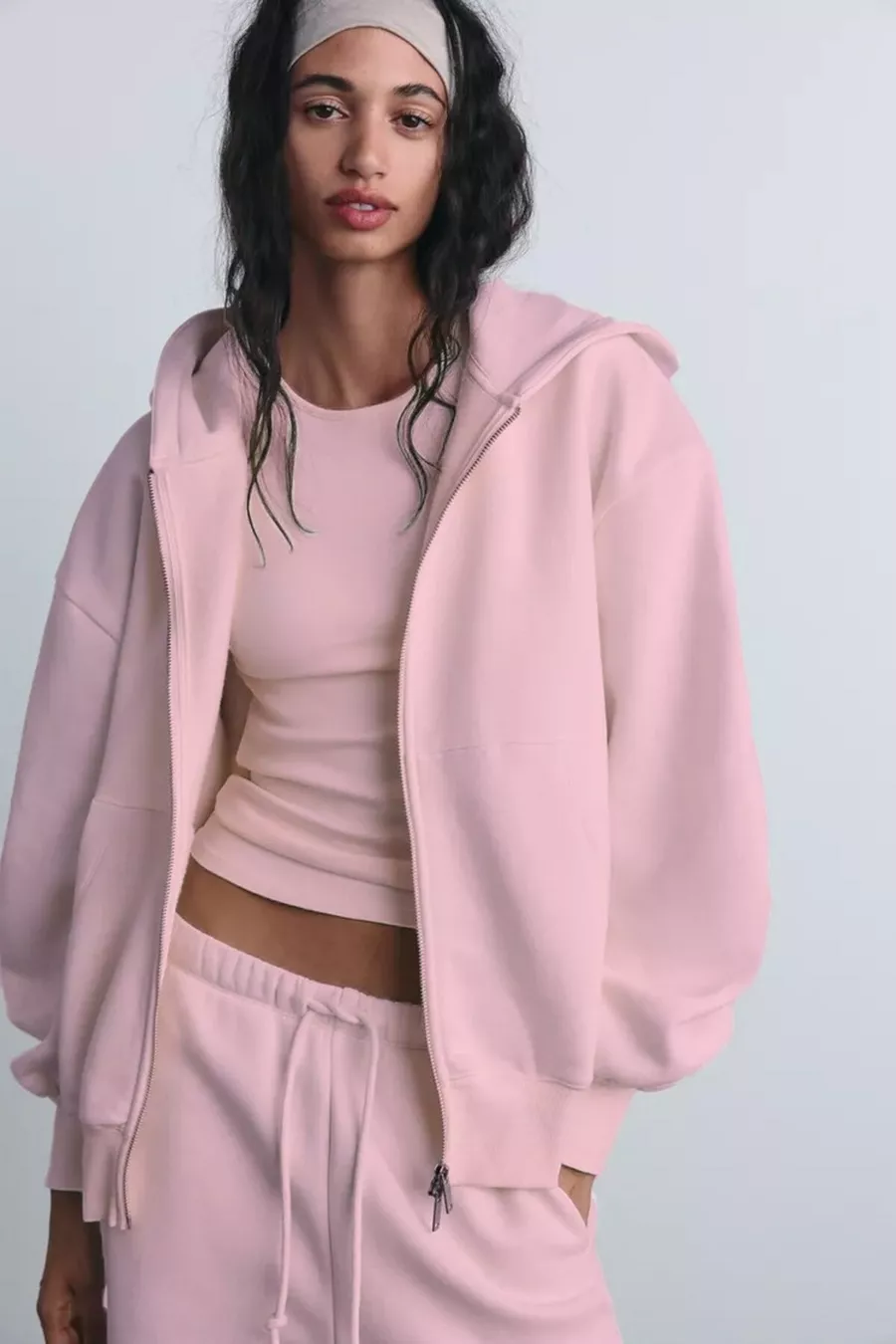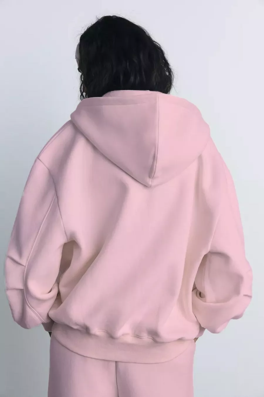 Ensemble de survêtement rose à capuche zippée, coupe oversize, doublé polaire