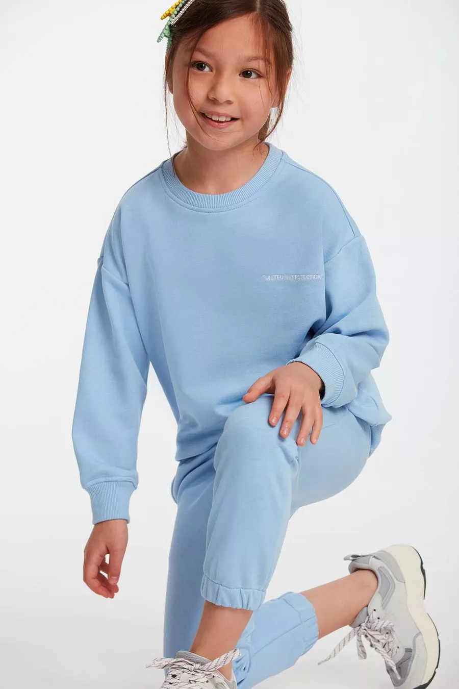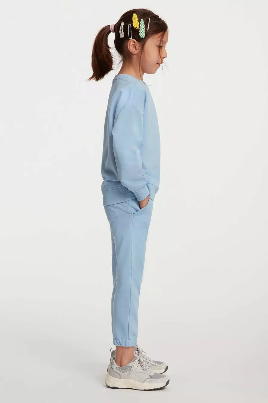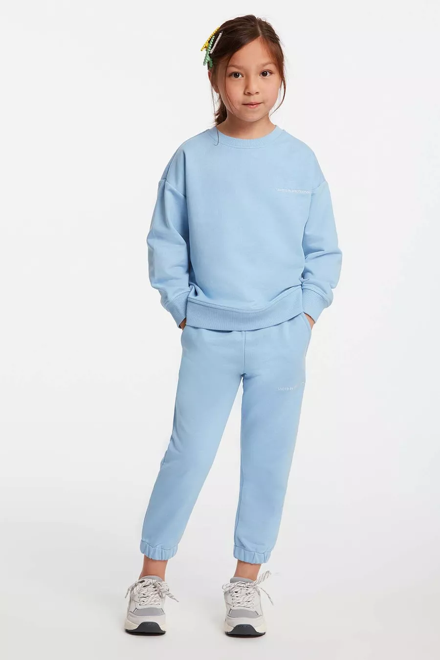 Ensemble de survêtement confortable bleu à col rond avec broderie pour fille Jabor