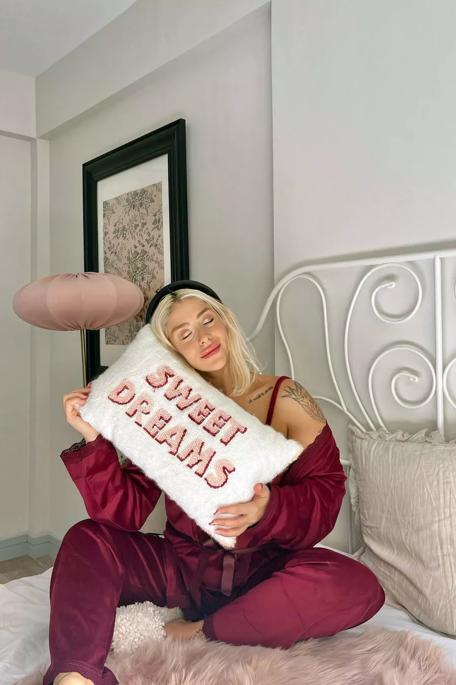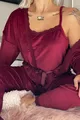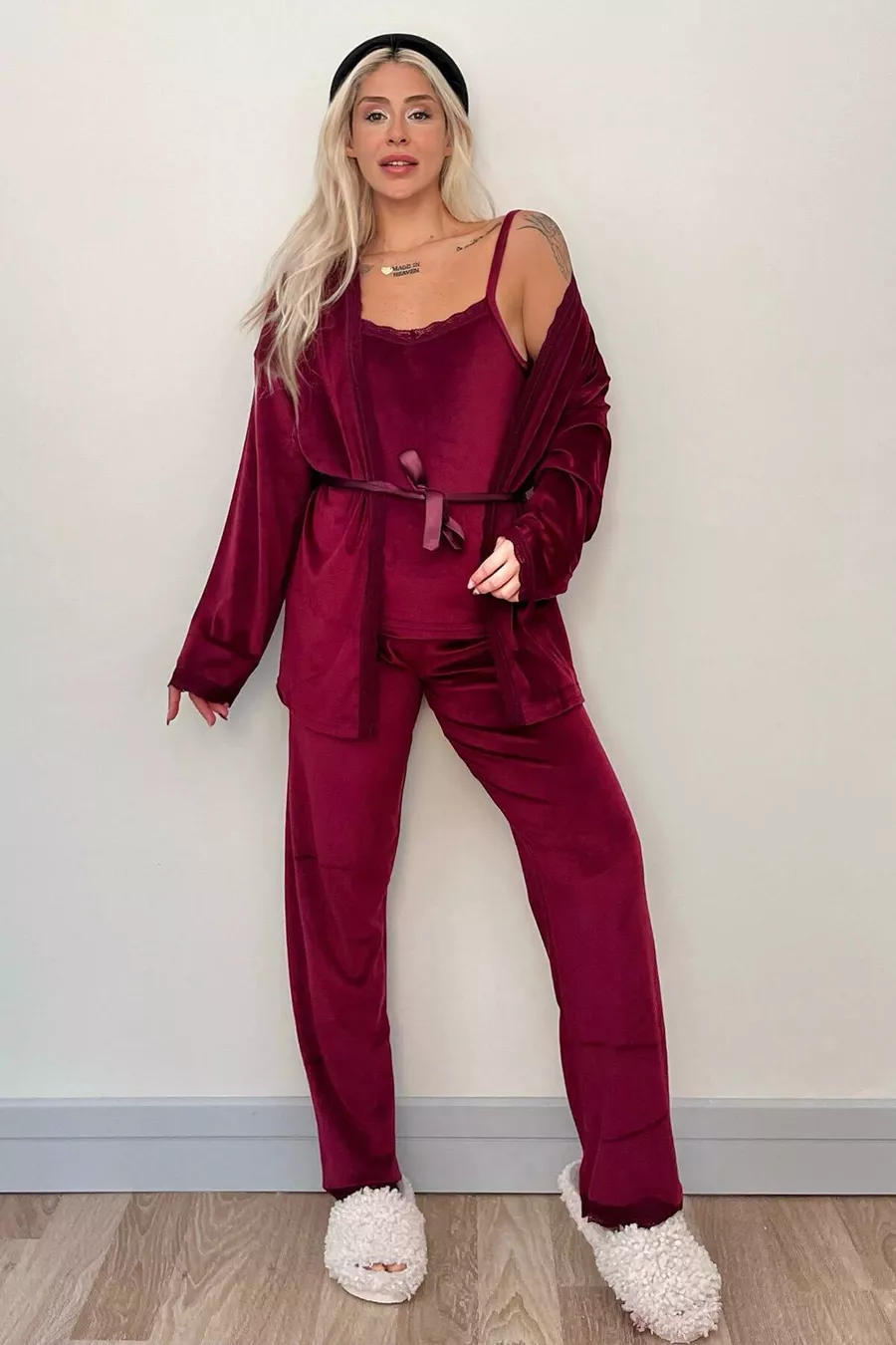 Ensemble de pyjama pour femme en velours Bordo Claret Exclusive avec peignoir
