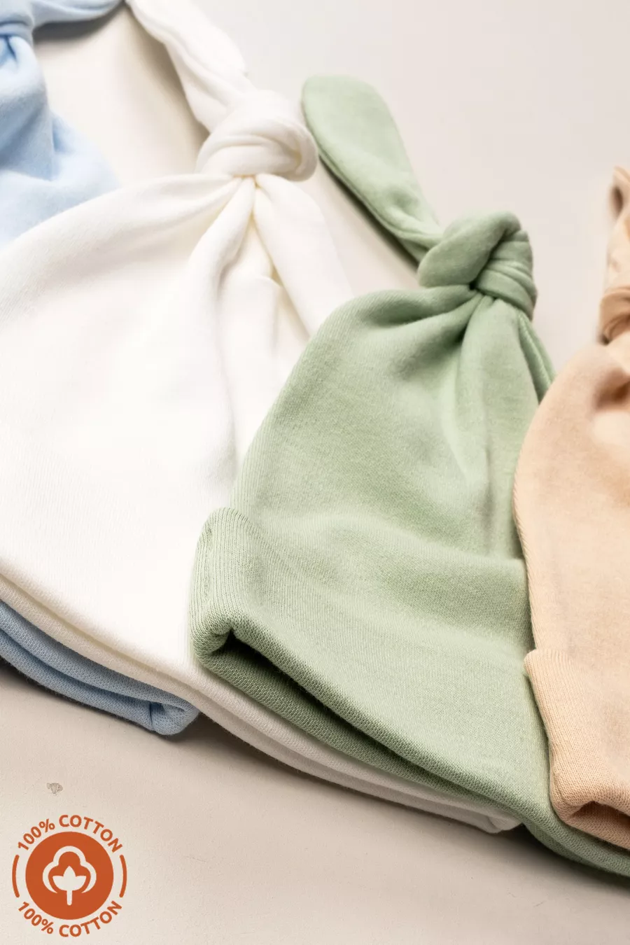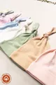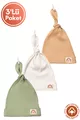 Ensemble de 3 bonnets pour nouveau-né en coton biologique avec liens, détails d'emblème, mixte