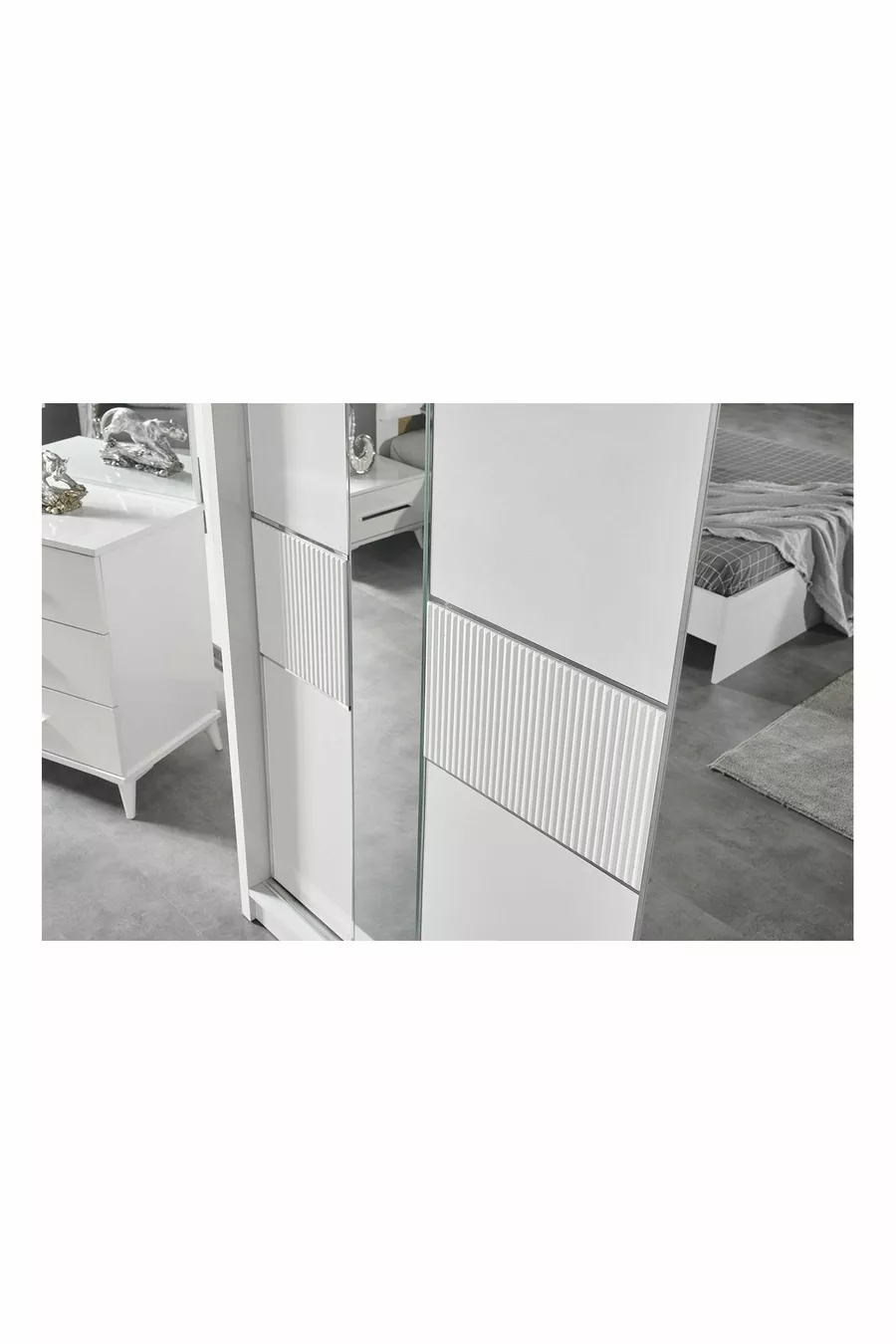 Couleur : Blanc Durée de la garantie : 2 ans Dimensions du lit / sommier : 160 x 200 Fonction du lit : Sans sommier Fonction de l'armoire : Avec portes Matériau du corps de l'armoire : Panneau aggloméré recouvert de décor Nombre de portes : 6 Contenu de l'ensemble : Lit + 2 tables de chevet + Commode + Armoire + Miroir Style : Moderne Thème / Style : Moderne Caractéristique : Avec portes