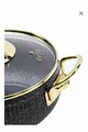 Couleur : Noir Taille/Dimensions : 26 cm Capacité : 4 L Caractéristique : Fond antiadhésif Matériau extérieur : Granit Matériau intérieur : Granit Nombre de pièces : 7 Origine : TR