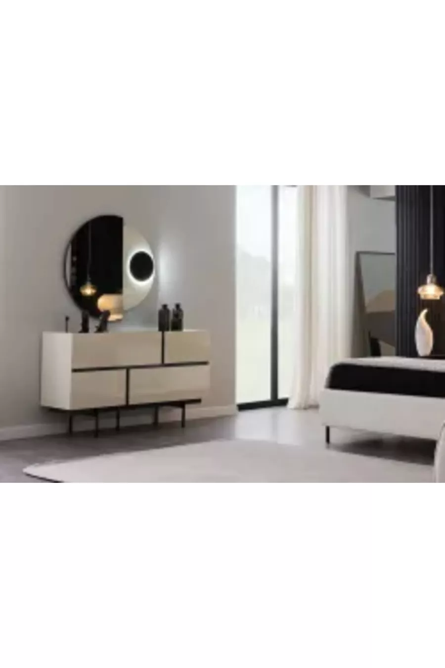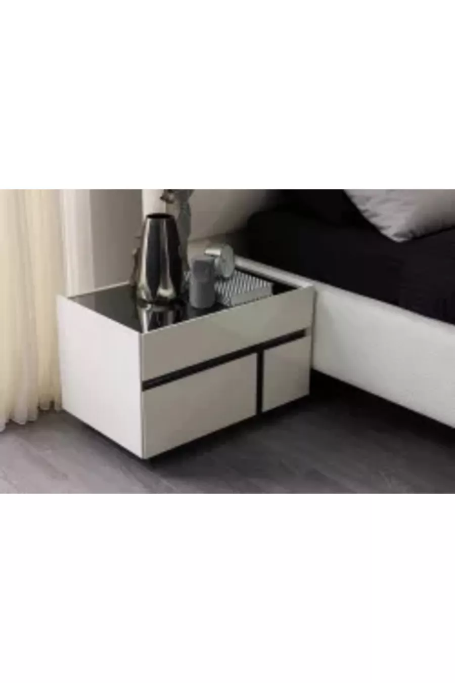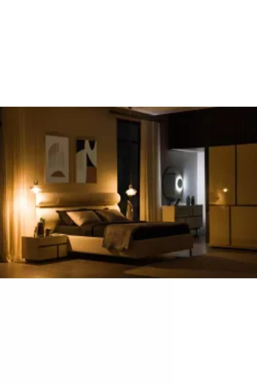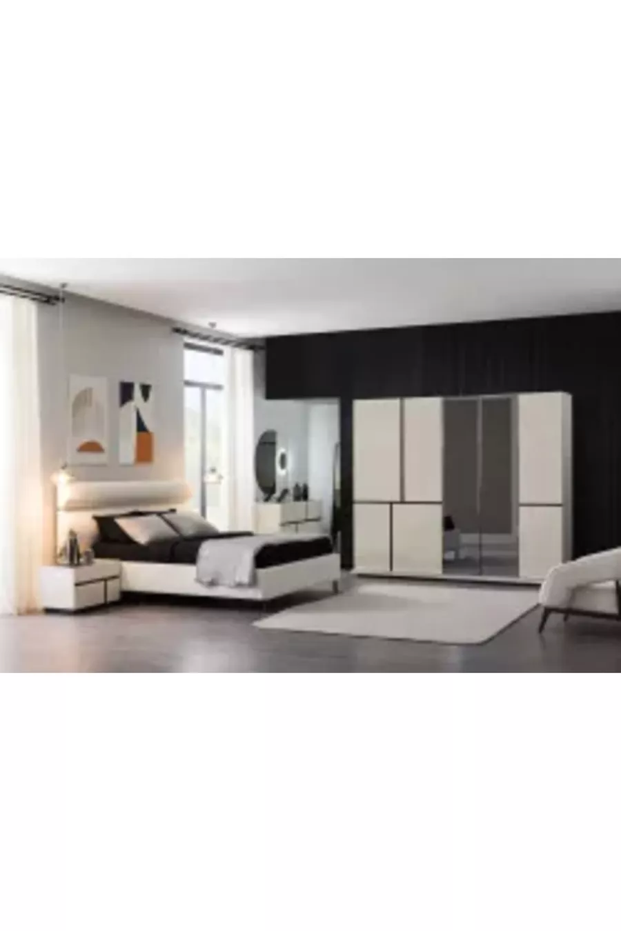Contenu du set : Armoire + 2 tables de chevet + Commode + Tête de lit