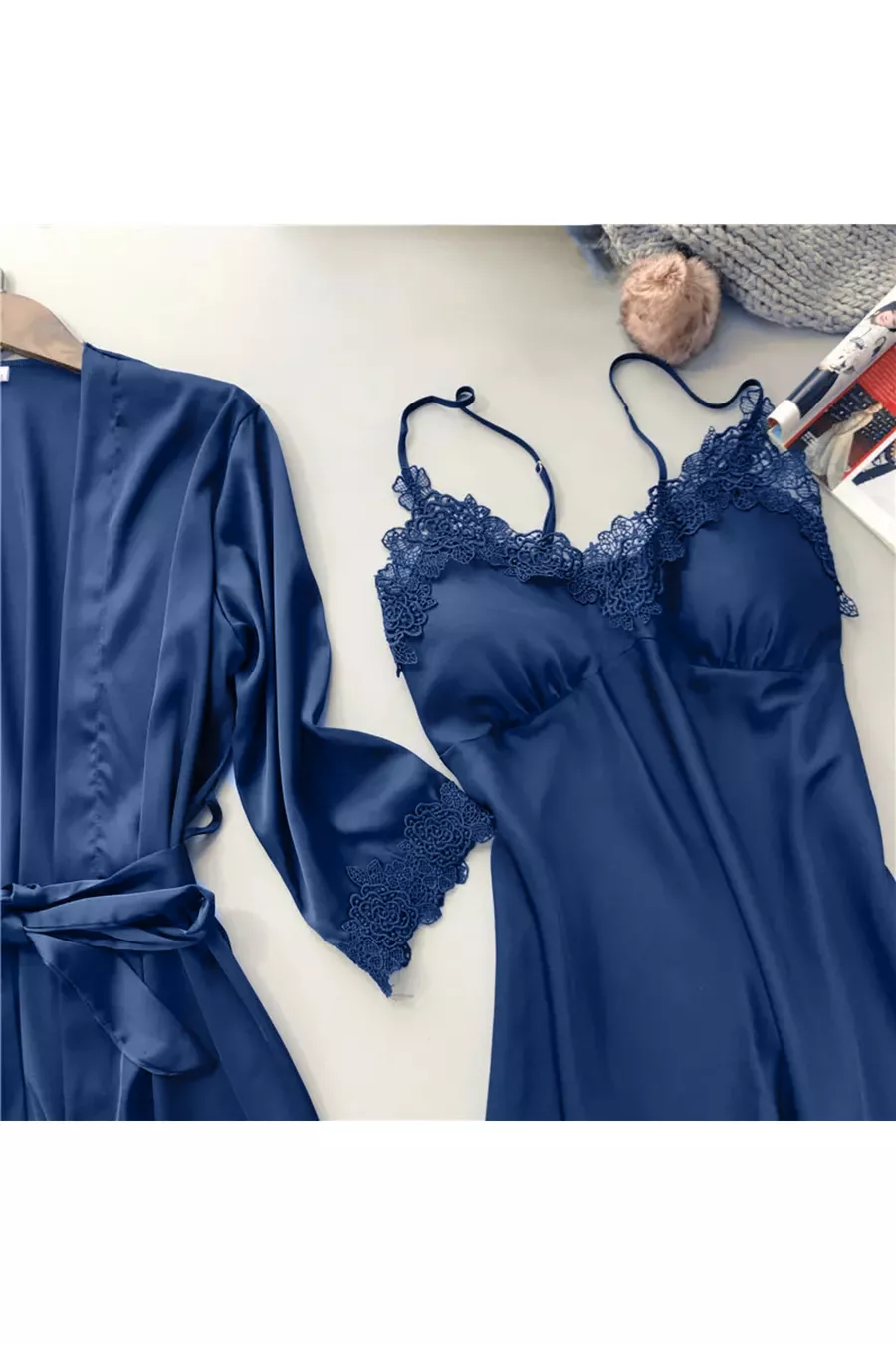 Ensemble de Nuit Satin pour Femme 5 Pièces – Pyjama de Mariée avec Dentelle P–