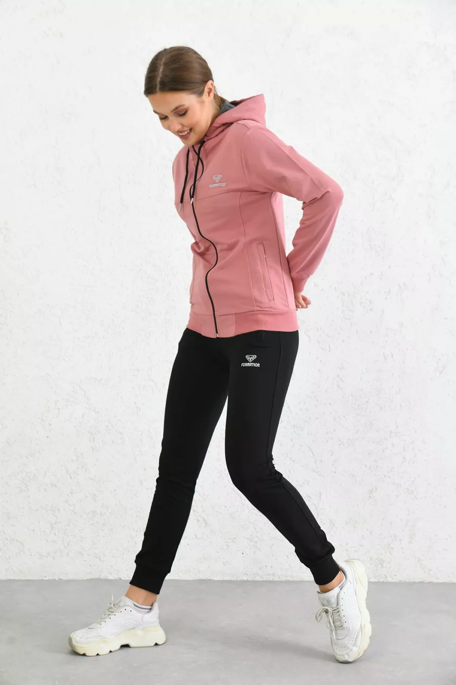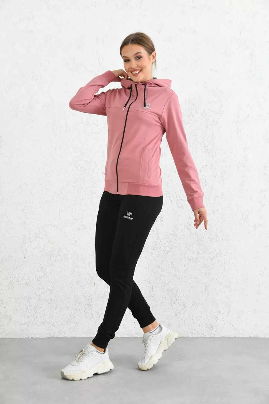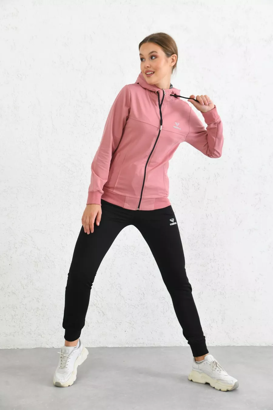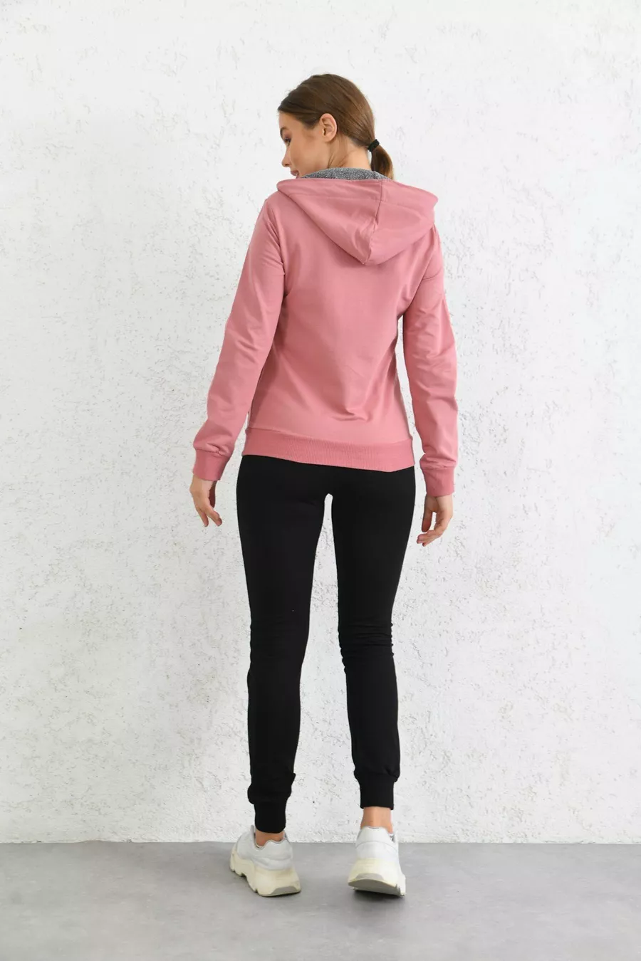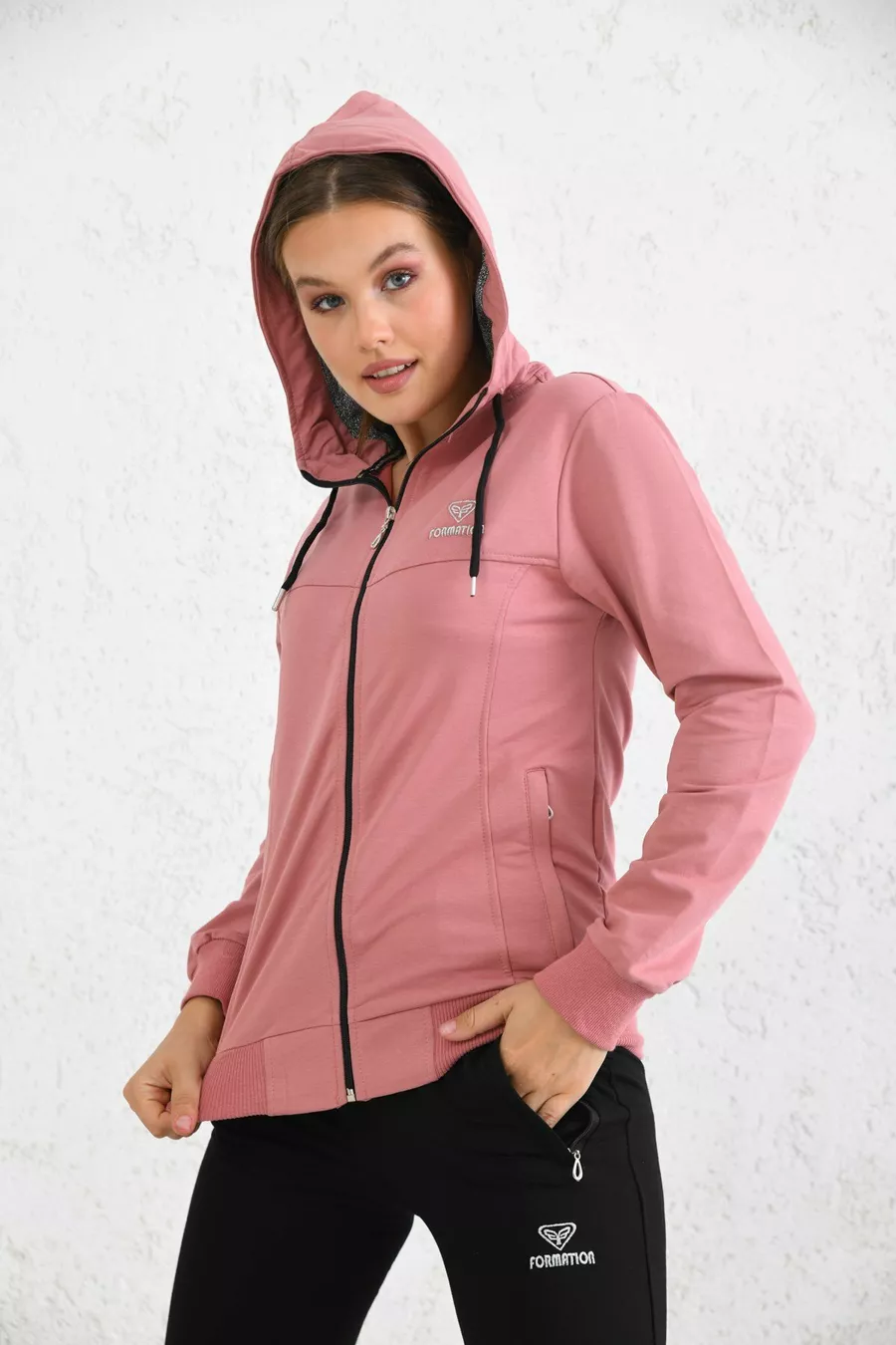 Ensemble de survêtement en jersey à capuche et zip couleur poudre