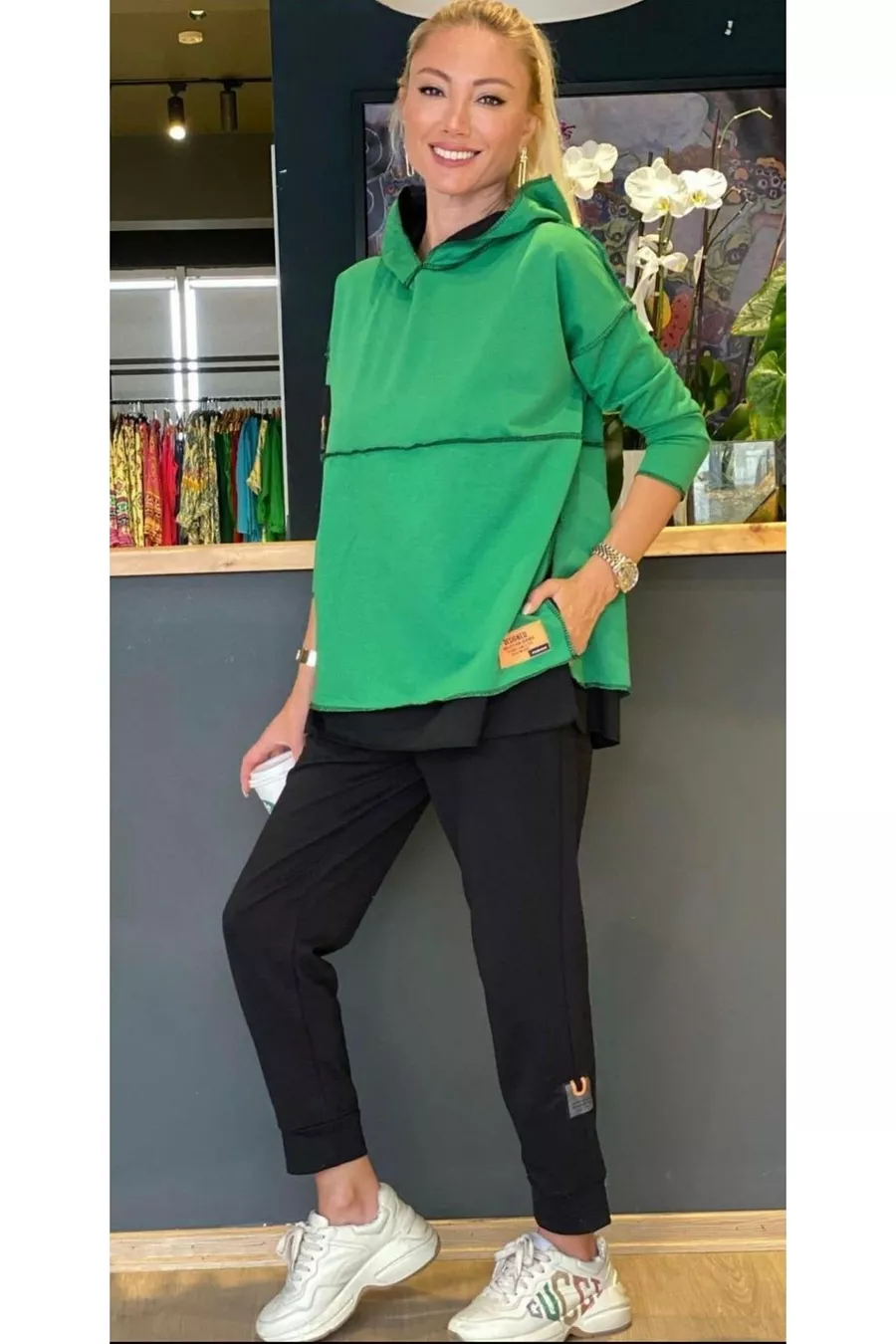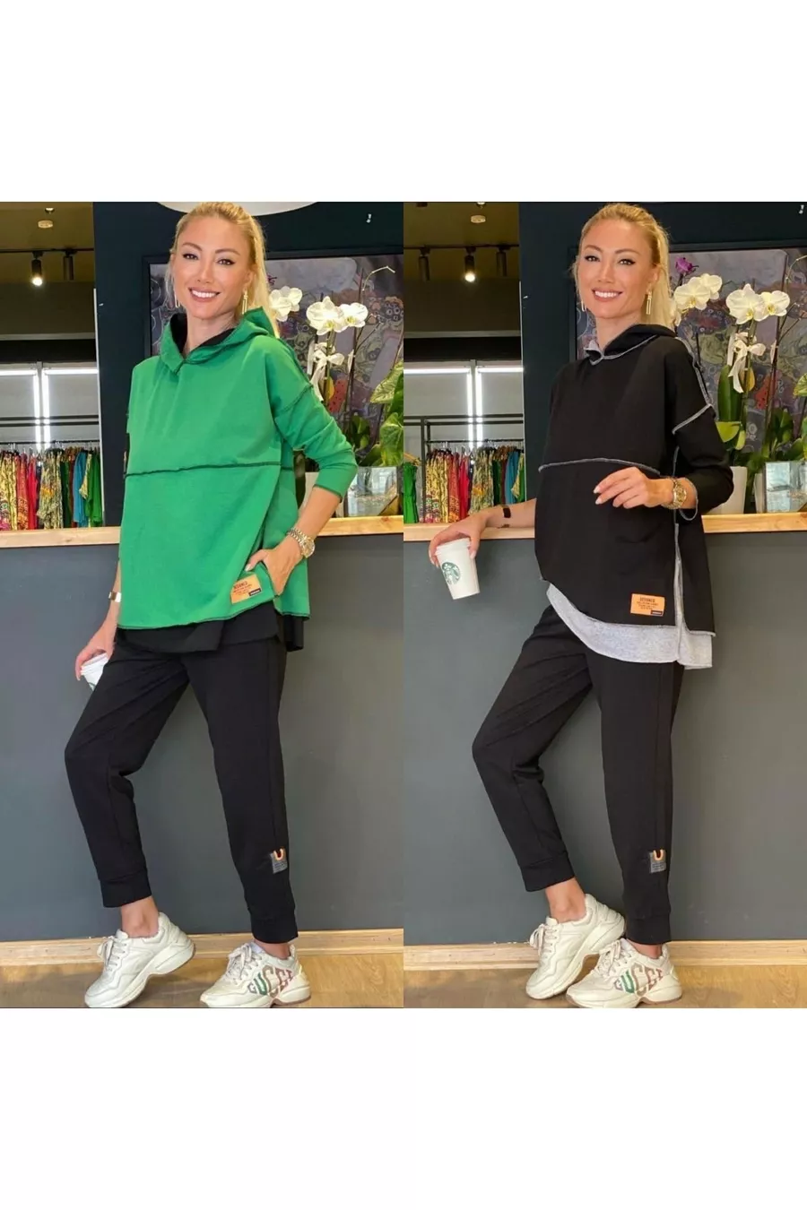 Ensemble deux pièces femme avec capuche noire et détail à l'ourlet de la jupe