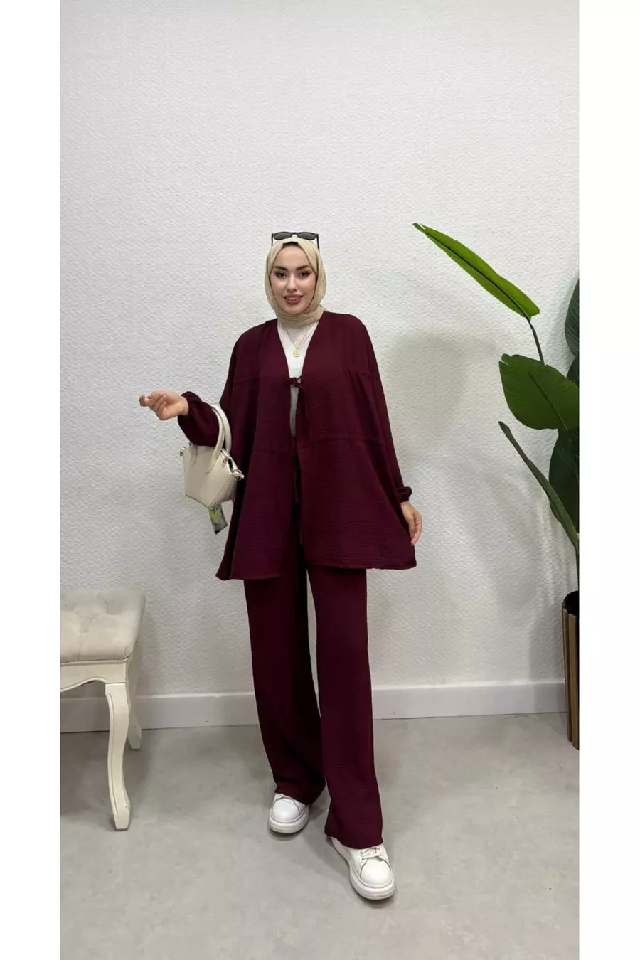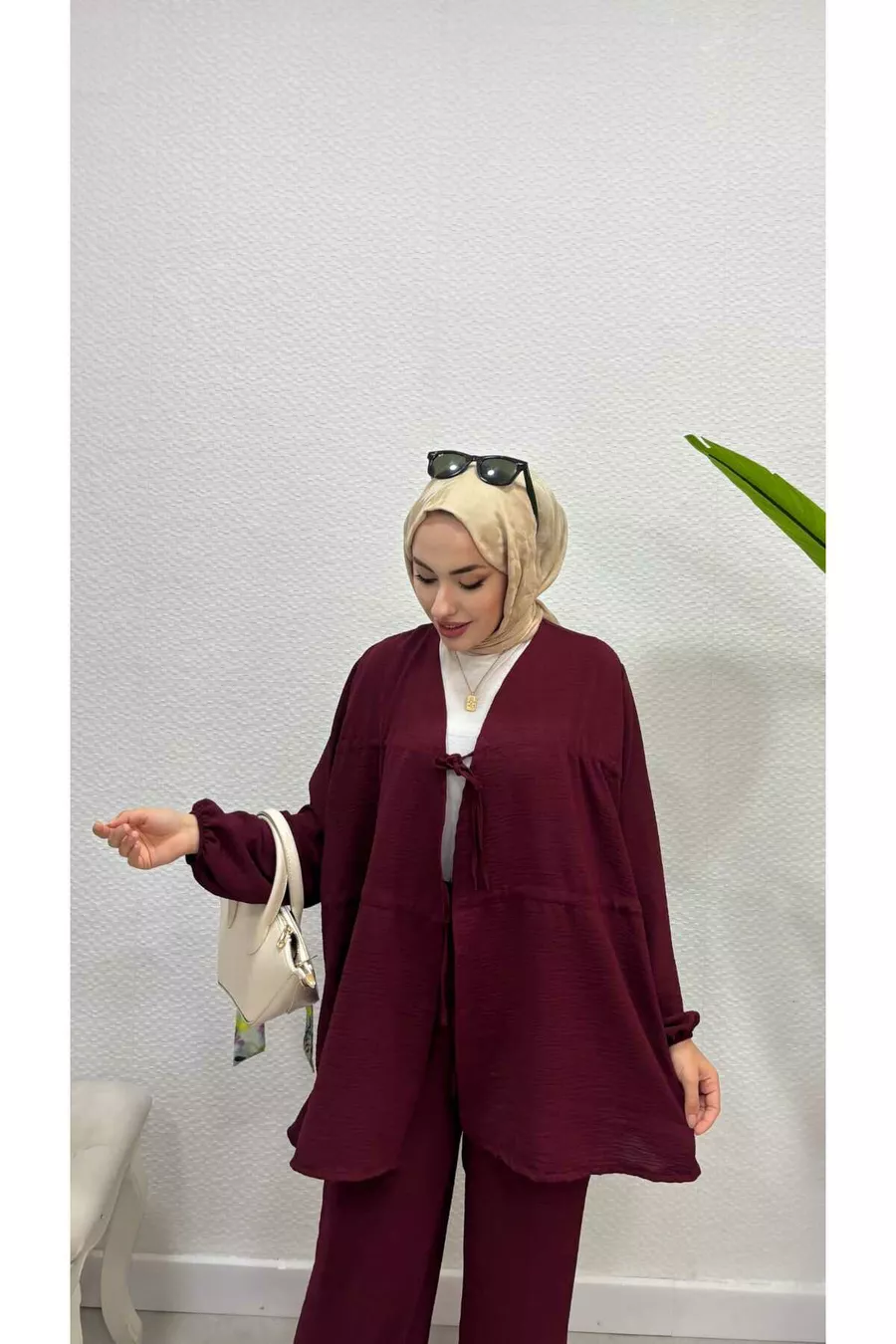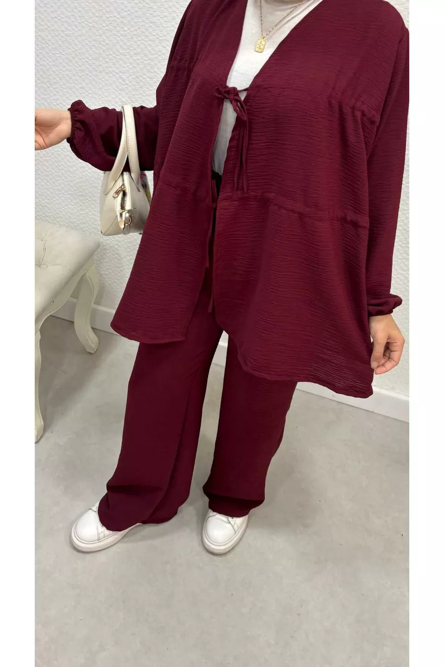 Ensemble deux pièces de pantalon à cordon Aerobin pour hijab Bordeaux