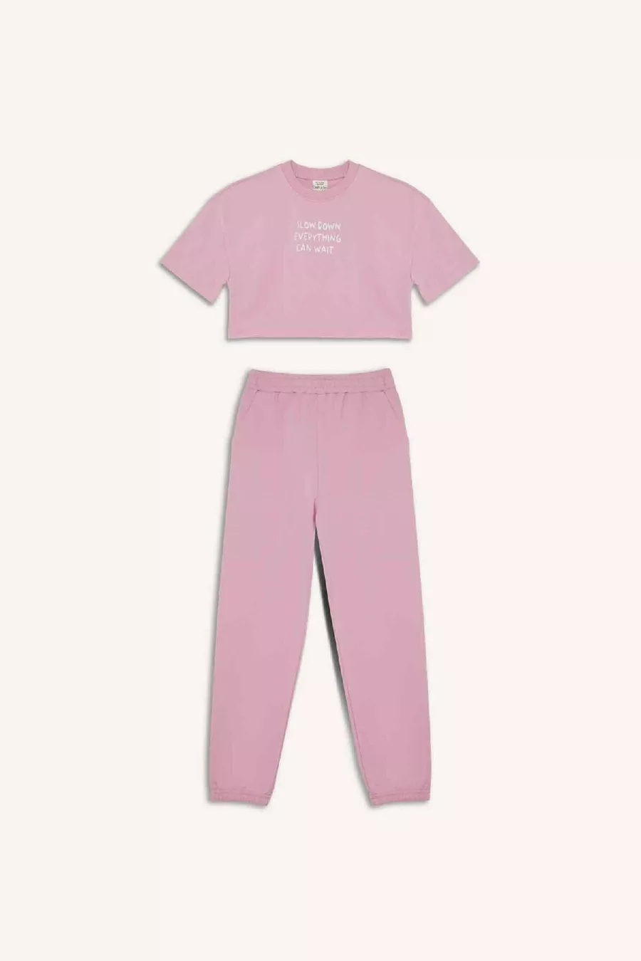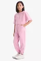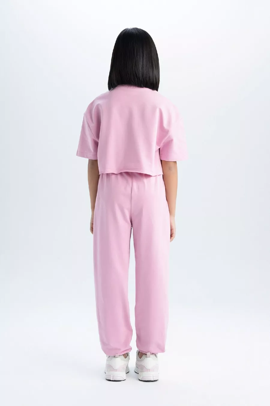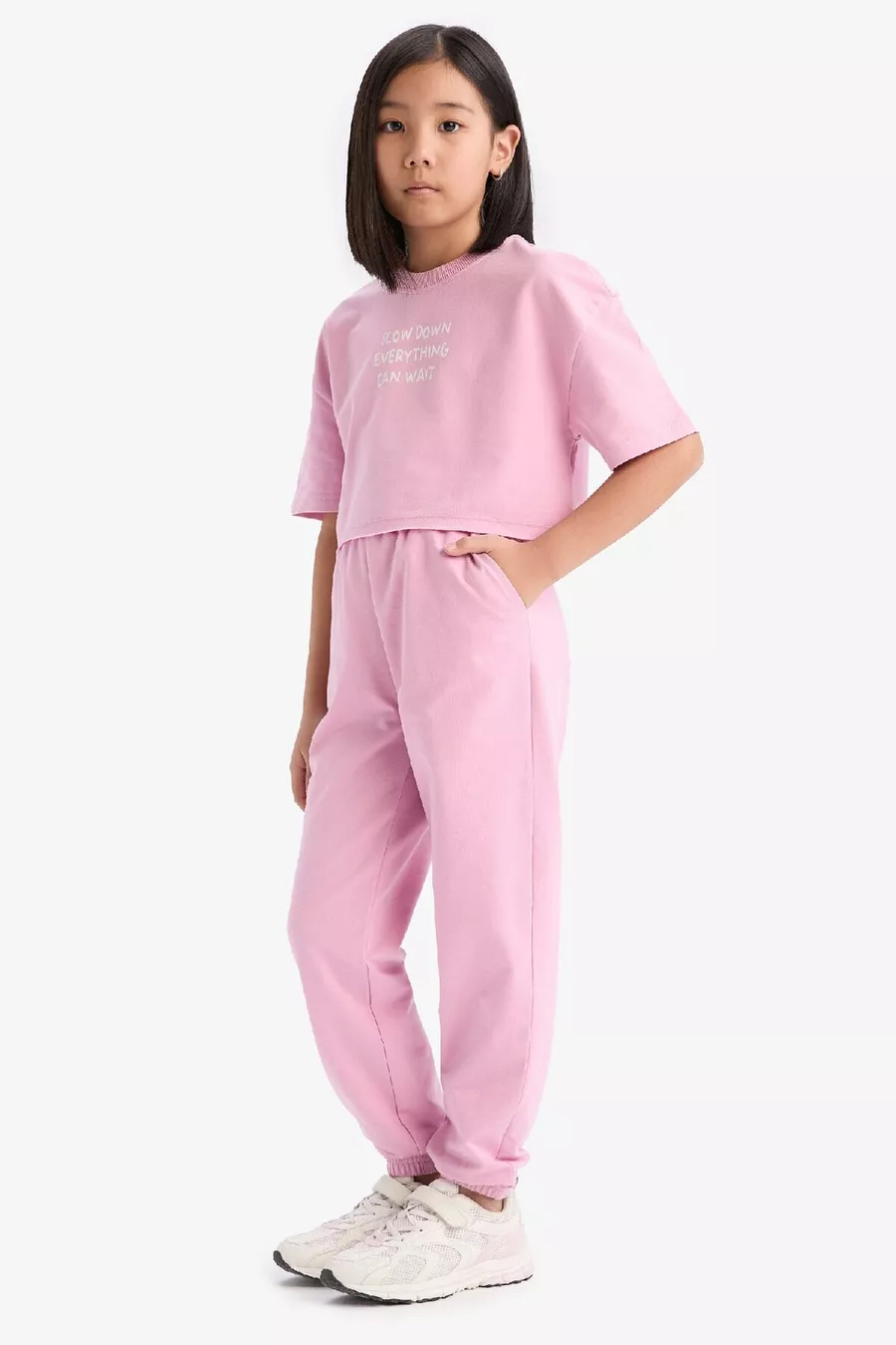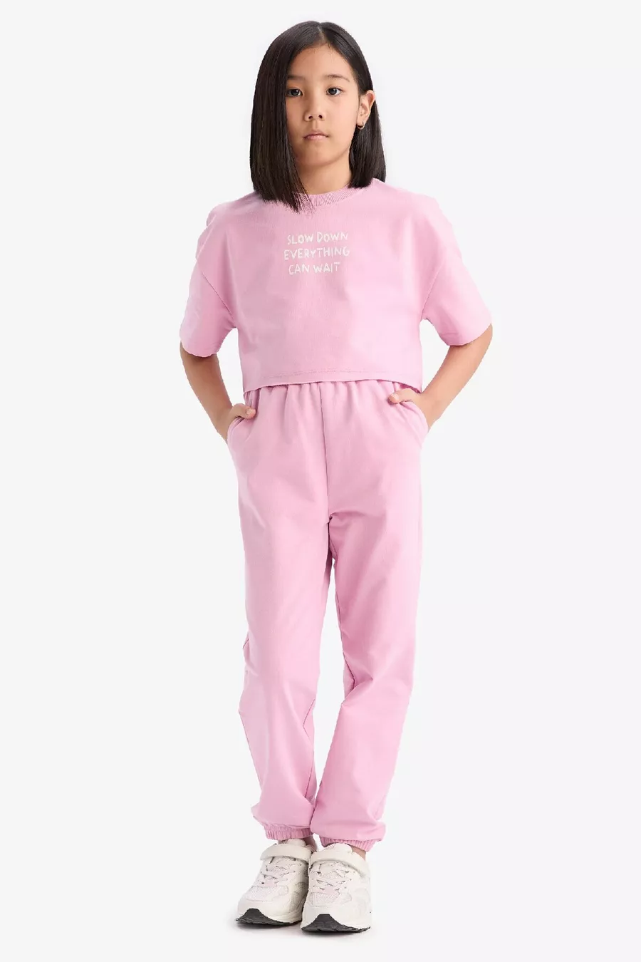 Ensemble fille 2 pièces T-shirt à manches courtes avec col rond et imprimé, pantalon de survêtement à taille et chevilles élastiquées A