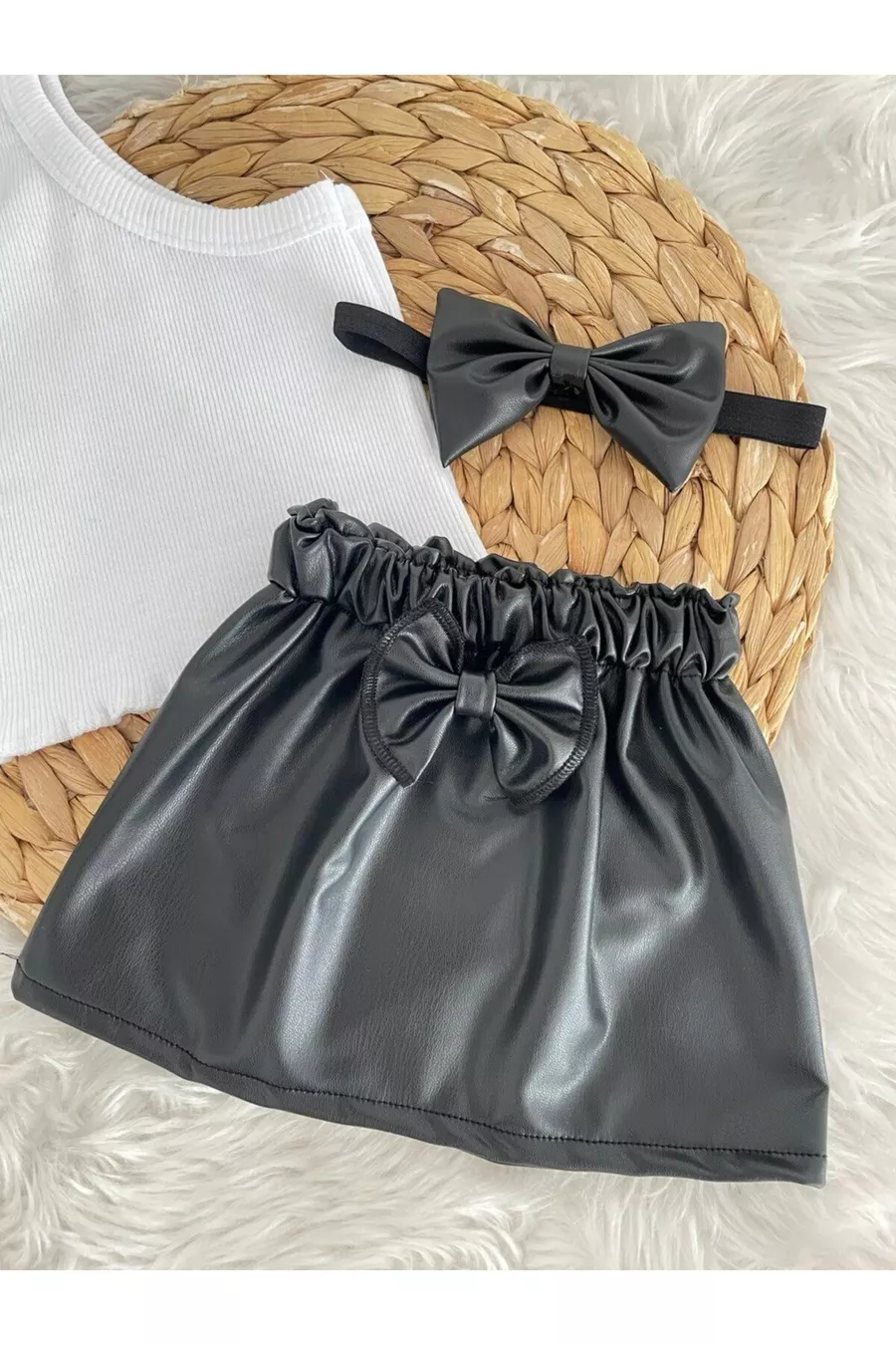 Ensemble jupe en cuir, bandana et crop top pour fille