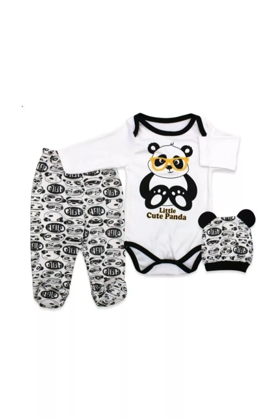 Ensemble panda blanc pour bébé unisexe, trois pièces