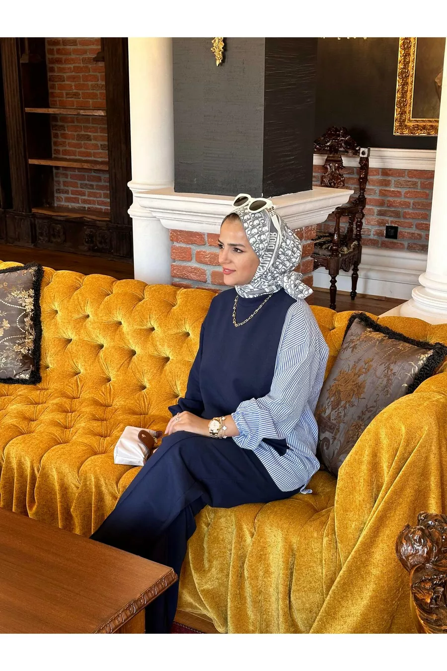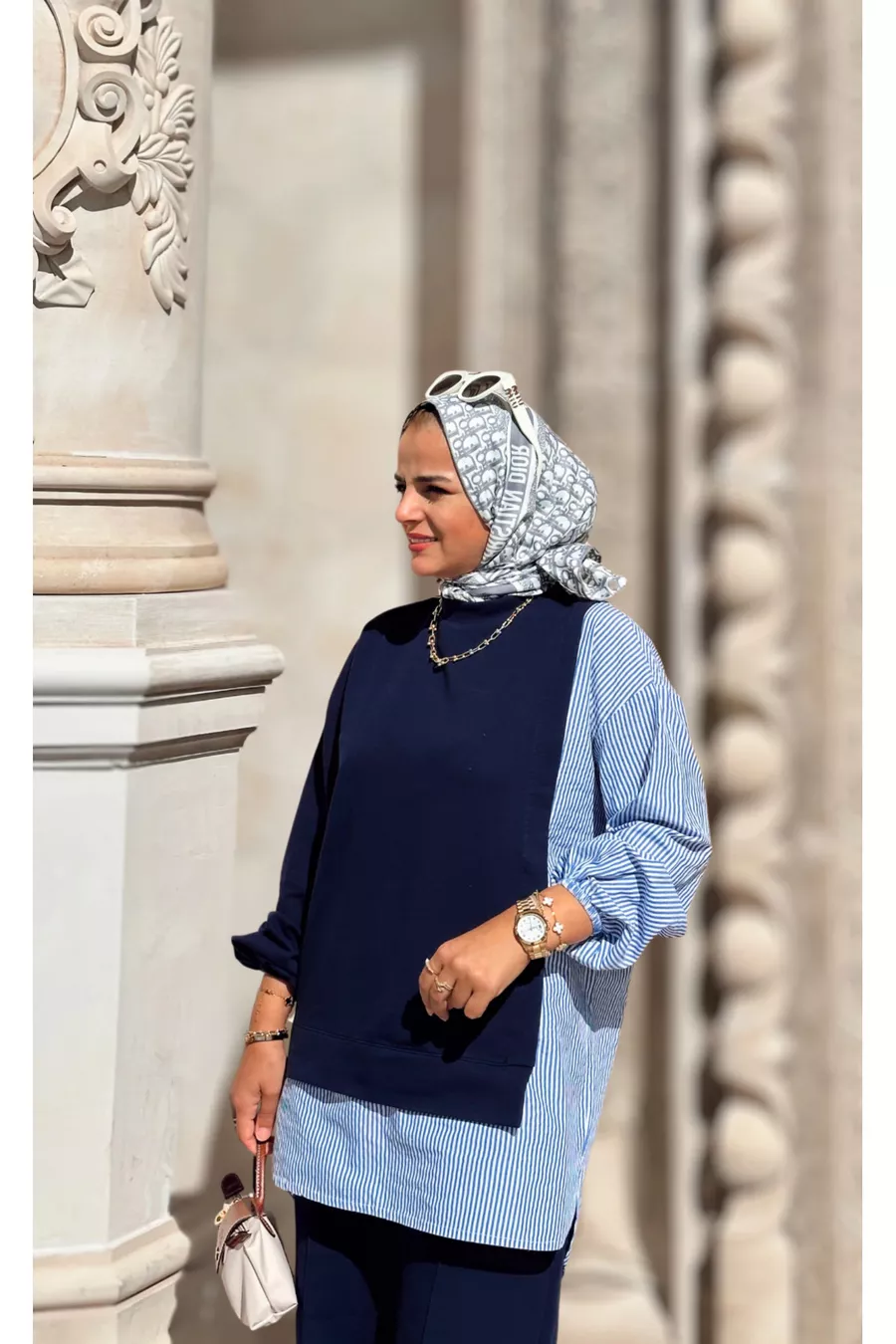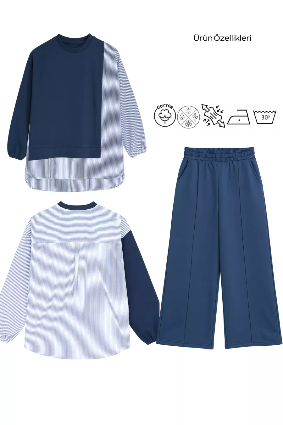 Ensemble pour femmes en hijab Line Ensemble à deux pièces Chemise Bleu marine