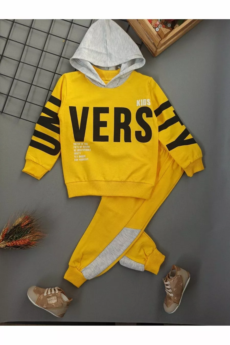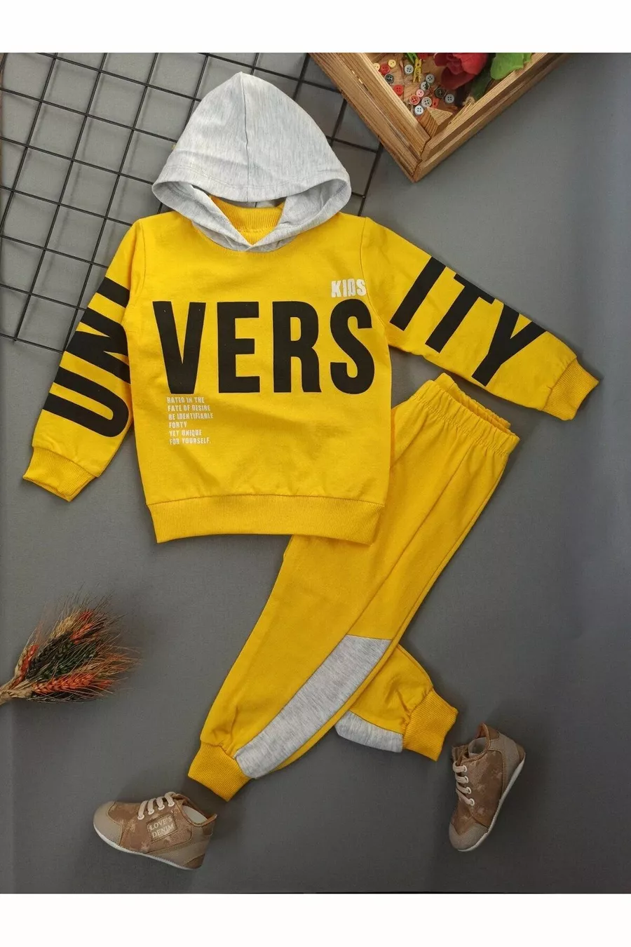 Ensemble pour enfants à deux pièces avec écriture 'Sarı Vers Tıll', pour 1-2-3-4-5 ans