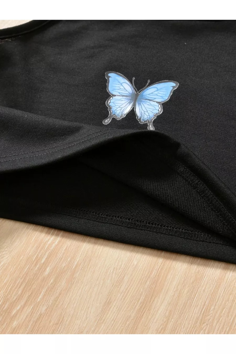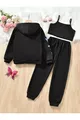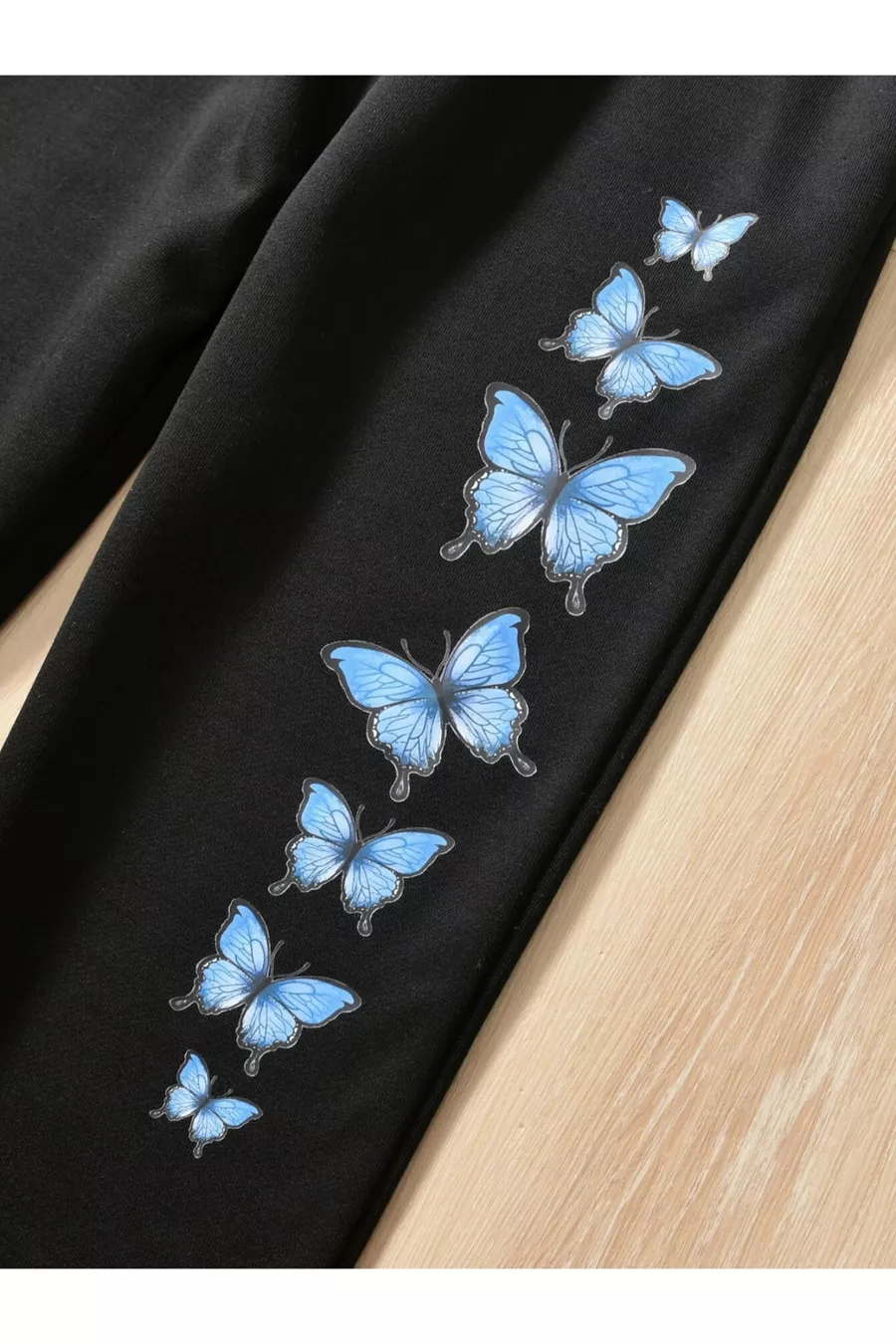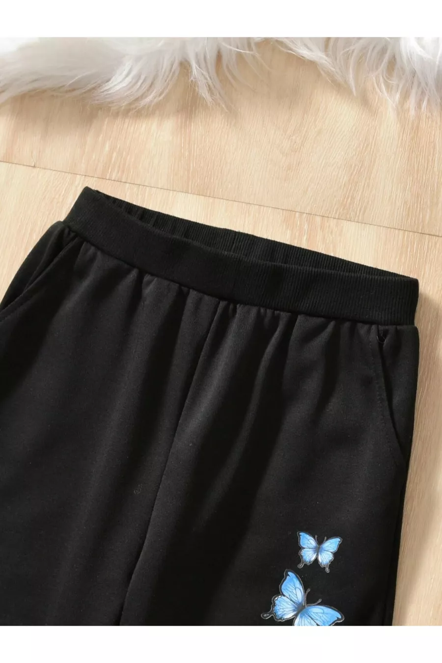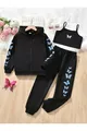 Ensemble pour fille avec veste zippée, crop et pantalon de survêtement imprimés papillon noir