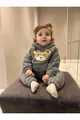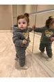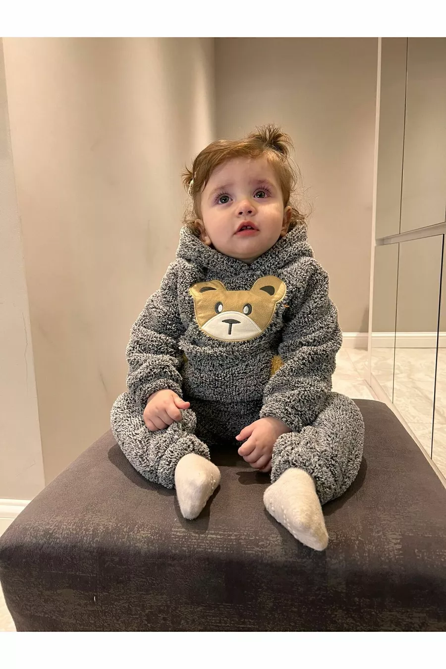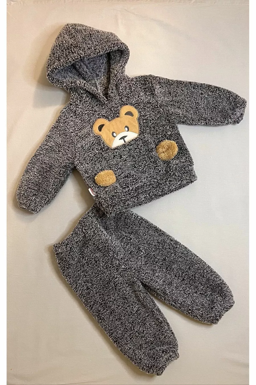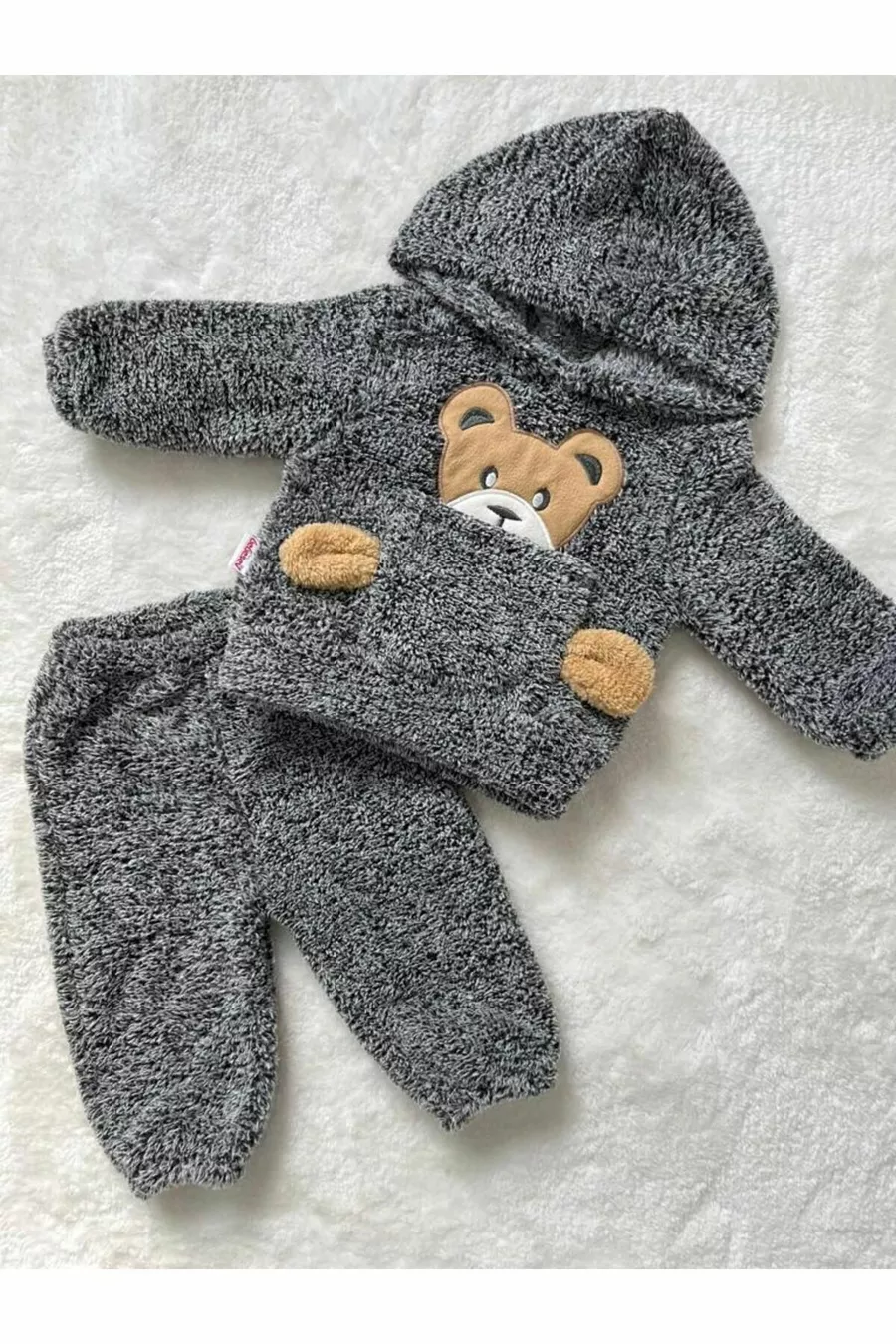 Ensemble pour bébé en velours doux d'hiver avec motif ourson, poches en peluche et capuche
