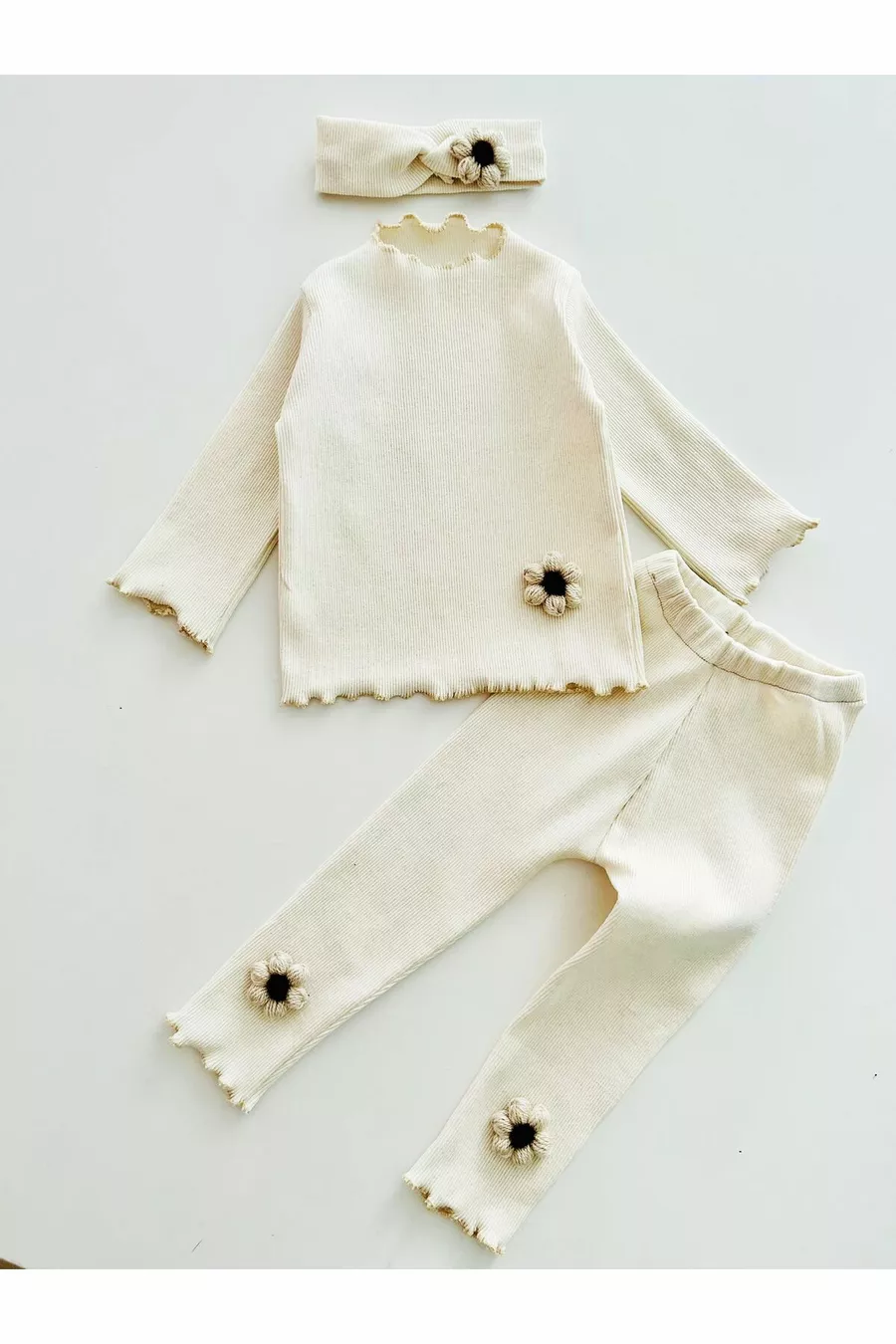 Ensemble pour bébé fille avec haut et bas côtelés et bandana