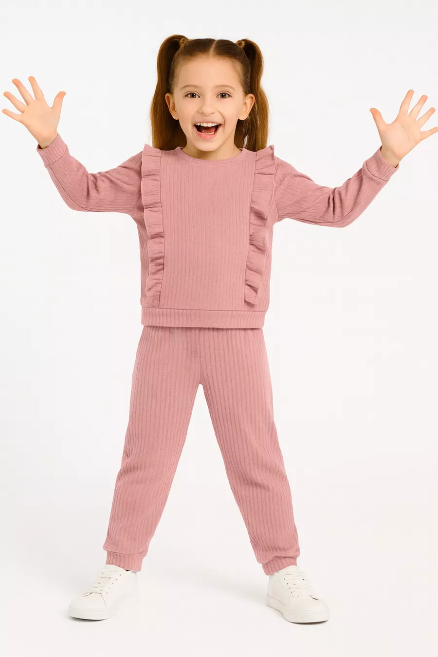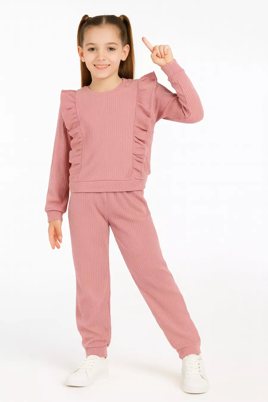 Ensemble pour fille composé de haut et bas en coton à manches longues avec volants