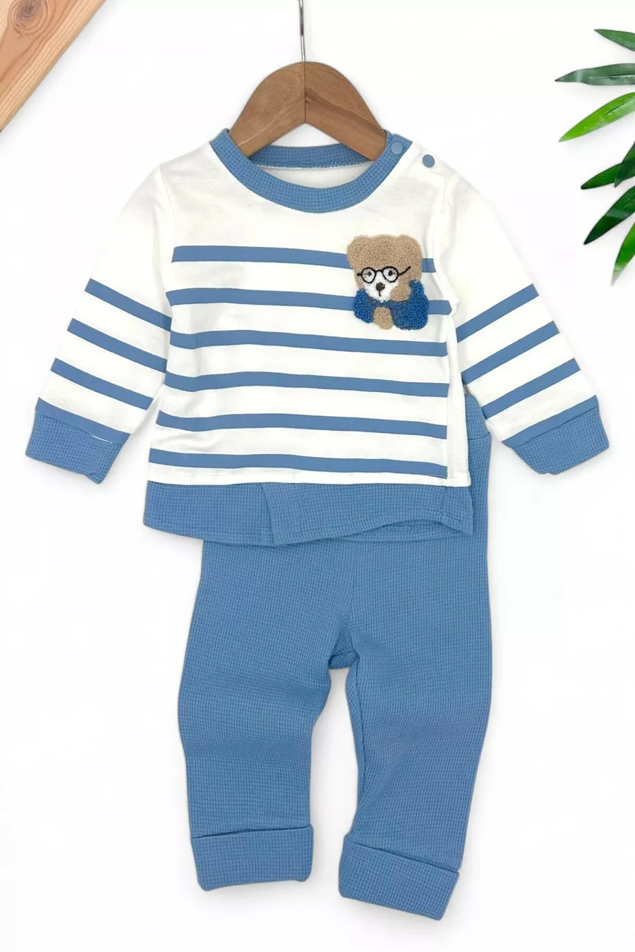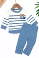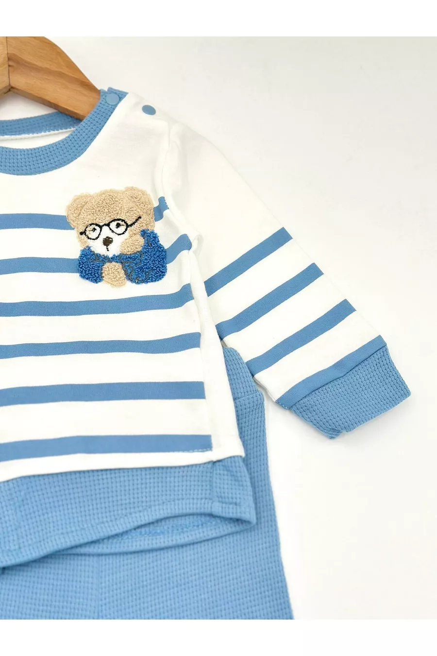 Ensemble pour bébé garçon de saison avec broderie d'ours, manches longues, col rond, motif rayé avec faux chemisier