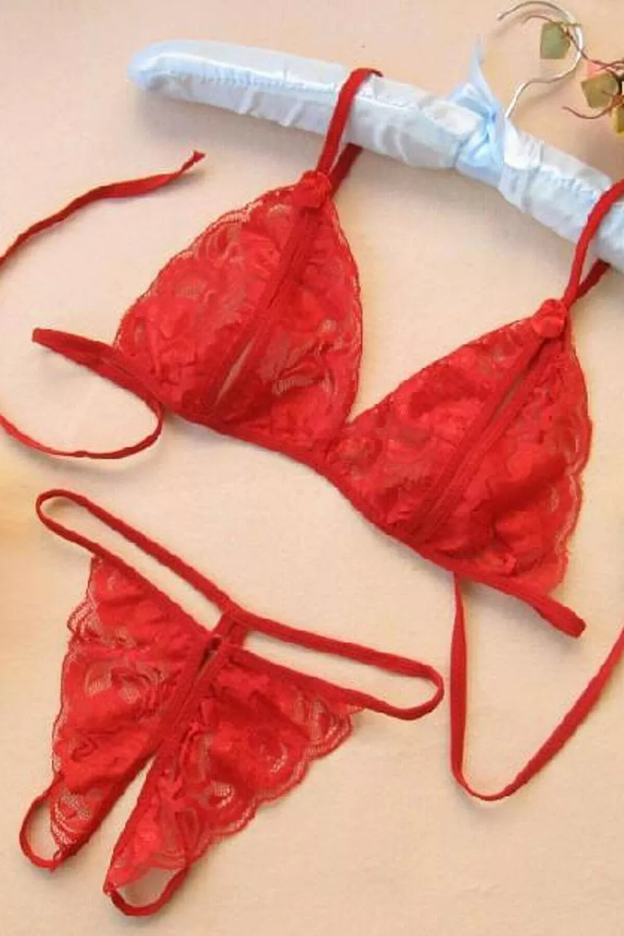 Ensemble soutien-gorge et culotte en dentelle rouge
