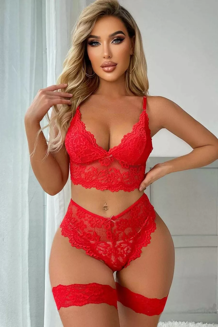 Ensemble soutien-gorge et culotte avec accessoires pour jambes