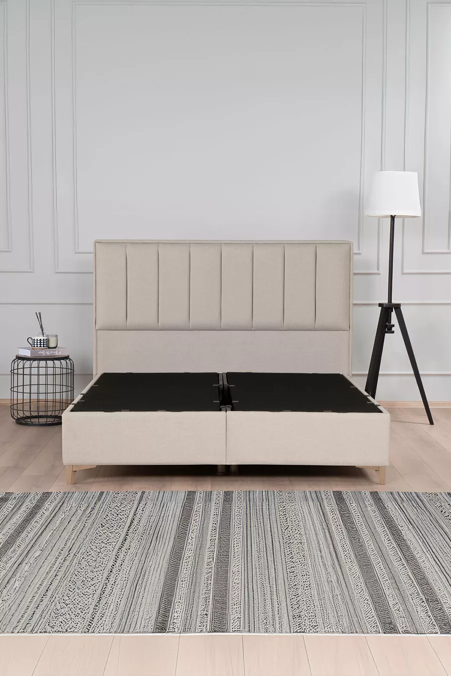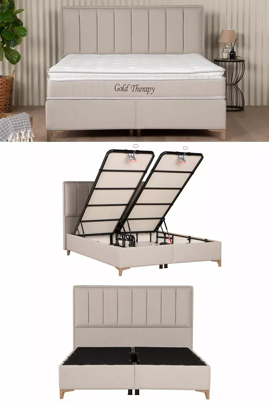 Ensemble tête de lit et sommier coffre Gold Therapy Beige (LIT NON INCLUS)