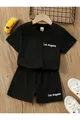 Ensemble T-shirt à col rond en coton avec imprimé spécial Los Angeles pour filles/garçons unisexe - Short
