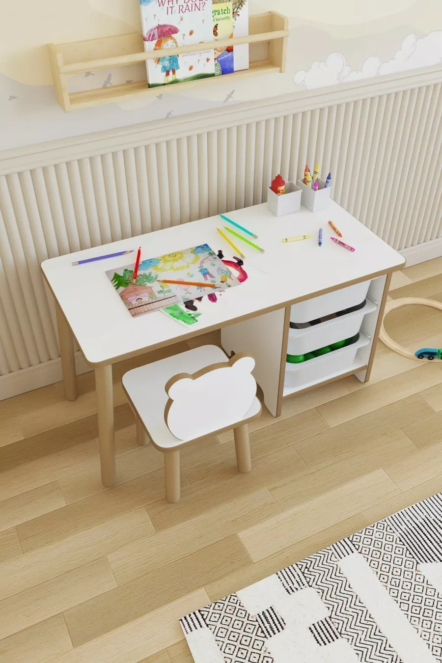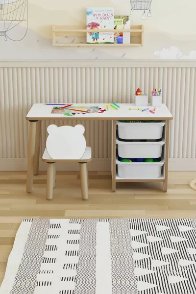 Âge : 1,5+ ans Matériau : MDF Couleur : Blanc Nombre de chaises : 1 Style : Scandinave Thème / Style : Scandinave Origine : TR Caractéristique : Long