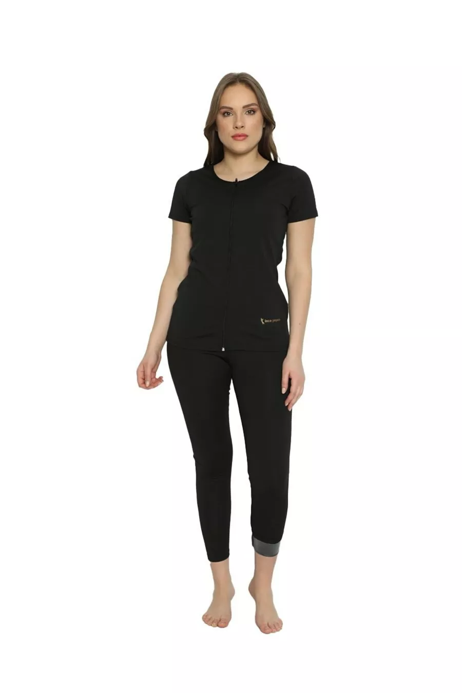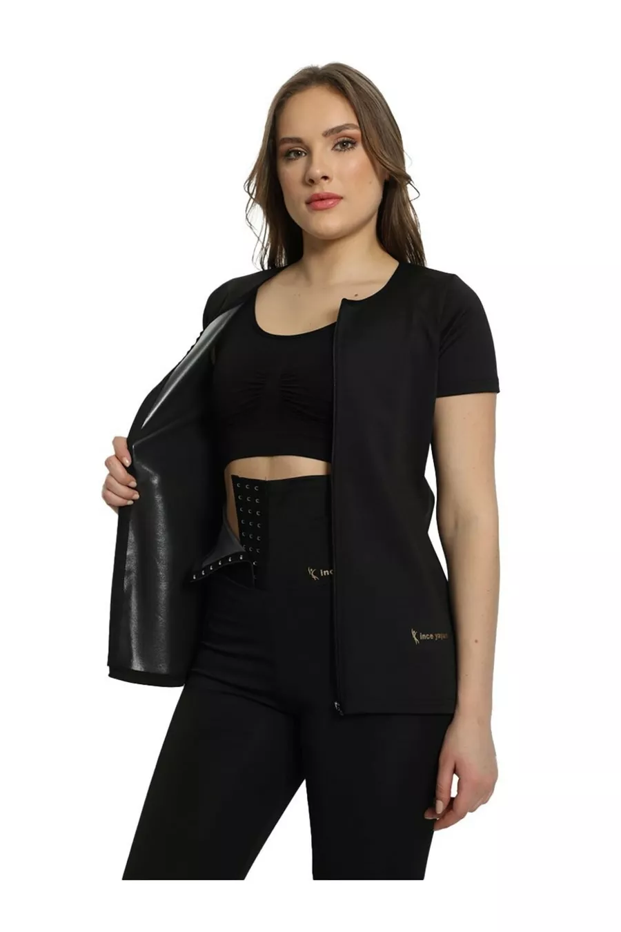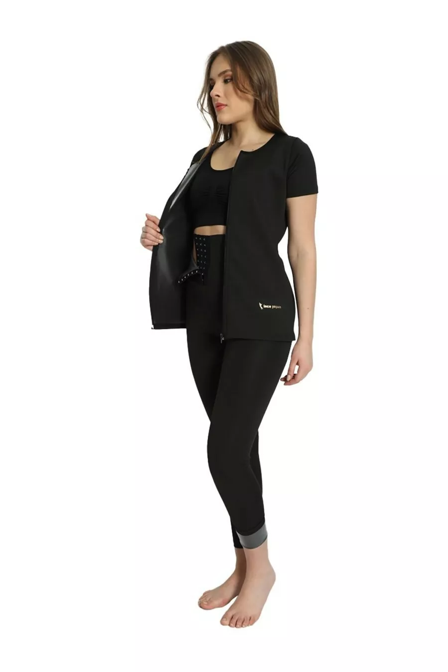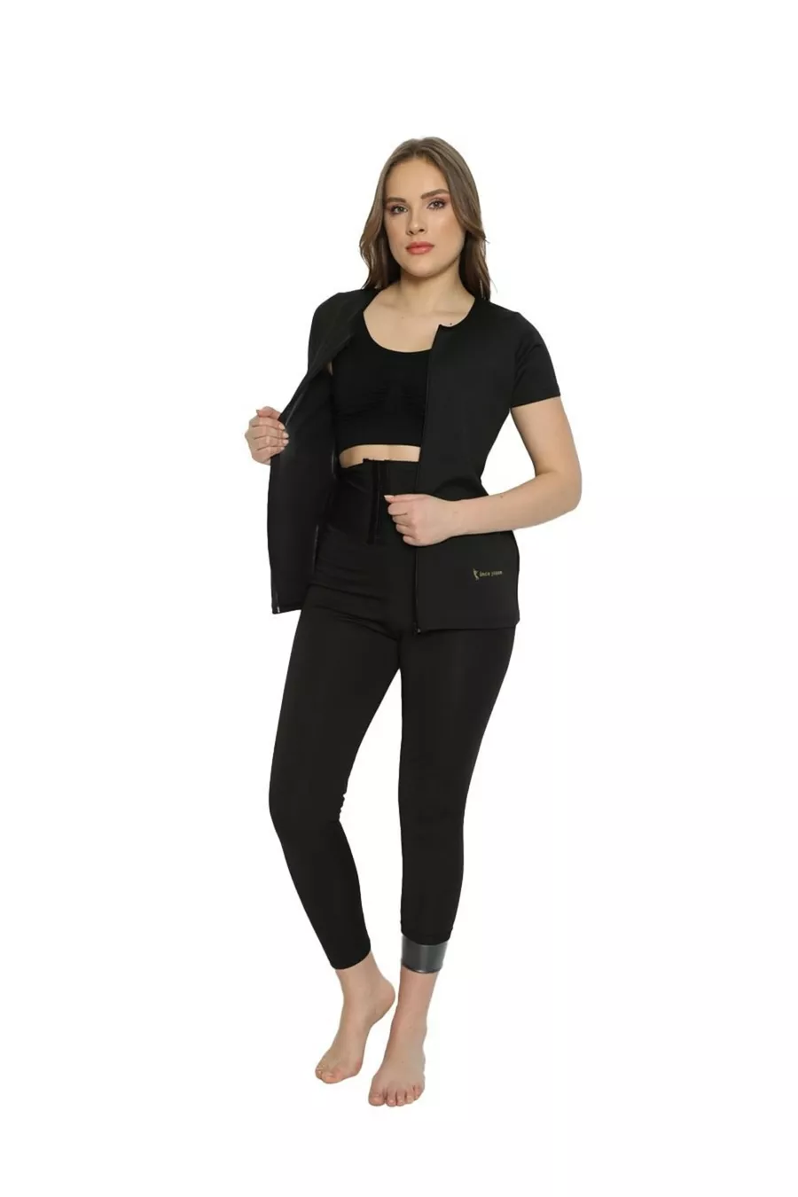 Ensemble thermique legging taille haute à boutons + body thermique à manches longues zippé qui affine et sculpte la silhouette