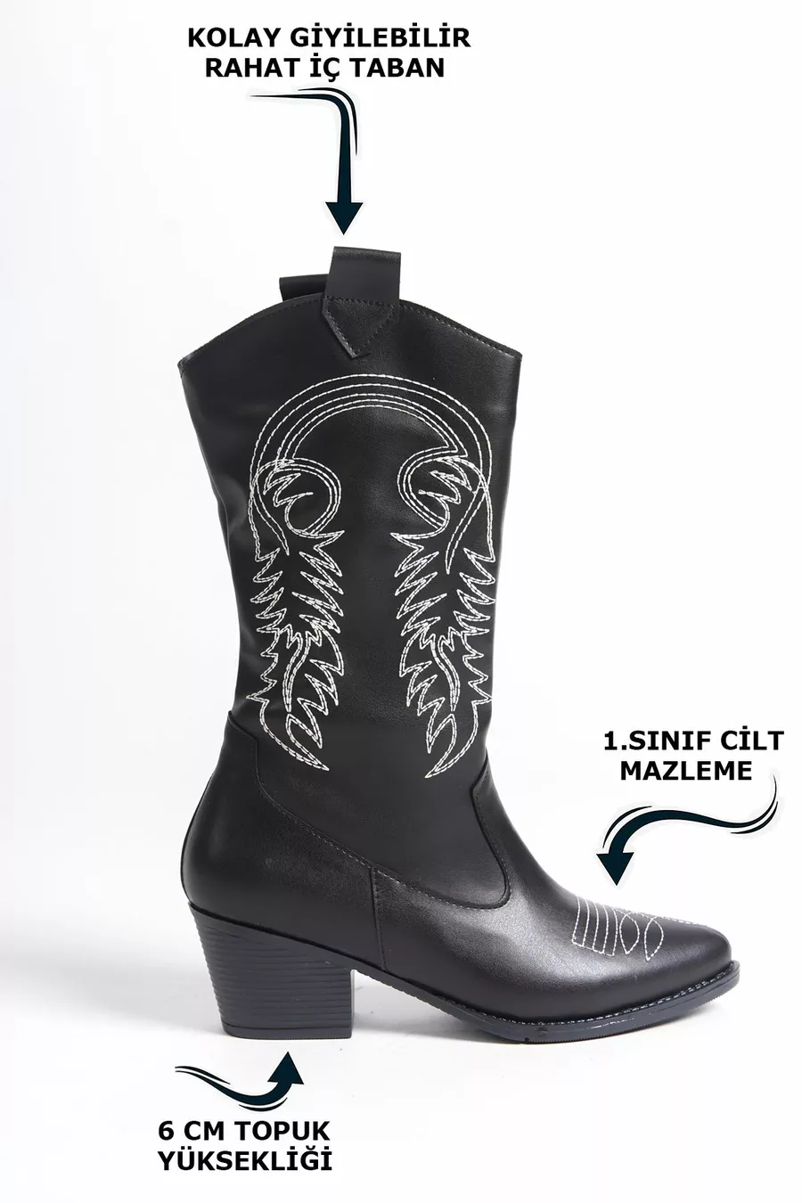 Ce produit sera expédié par Queenmadam. Il y a moins de 5 actions à vendre au prix de la campagne. Un produit peut être vendu par plus d’un vendeur. Les vendeurs des produits proposés à la vente par plus d’un vendeur sont classés en fonction du prix qu’ils fixent pour le produit, des évaluations du vendeur, du statut de livraison, des promotions dans les produits, si la livraison est gratuite ou non, et si les produits peuvent être livrés avec une livraison rapide, le stock et les catégories des produits. Un maximum de 10 unités de ce produit peut être commandé. Queenmadam se réserve le droit d’annuler les commandes de plus de 10 pièces. Cette limite n’est pas valable pour les commandes d’entreprise, et des limites différentes peuvent être définies pour les commandes d’entreprise. Retours gratuits sous 15 jours. Cliquez ici pour plus d’informations. La couleur de la botte zippée de cow-boy pour femme est le noir. Produit 1. Il est produit avec un matériau de peau de qualité. Les bottes pour femmes ont des détails de surpiqûres à motifs blancs. Le moule du produit est normal, vous pouvez obtenir votre propre numéro. Les bottes de cow-boy sont zippées. La longueur de la botte pour femme est de longueur moyenne. Les bottes pour femmes peuvent être portées pour un usage quotidien et lors d’occasions spéciales. Avec sa semelle intérieure souple, elle ne fatigue pas et ne fait pas mal aux pieds pendant longtemps. Le produit est fait à la main, spécialement fabriqué.