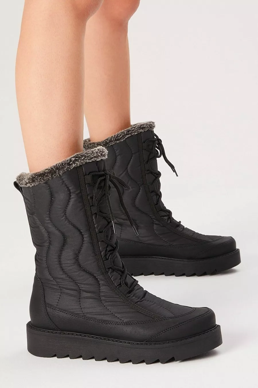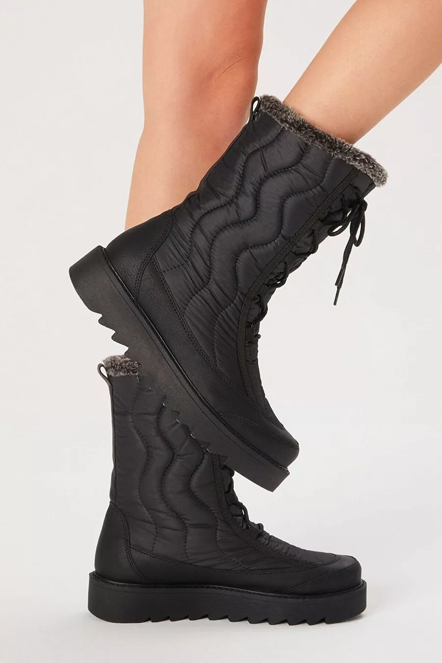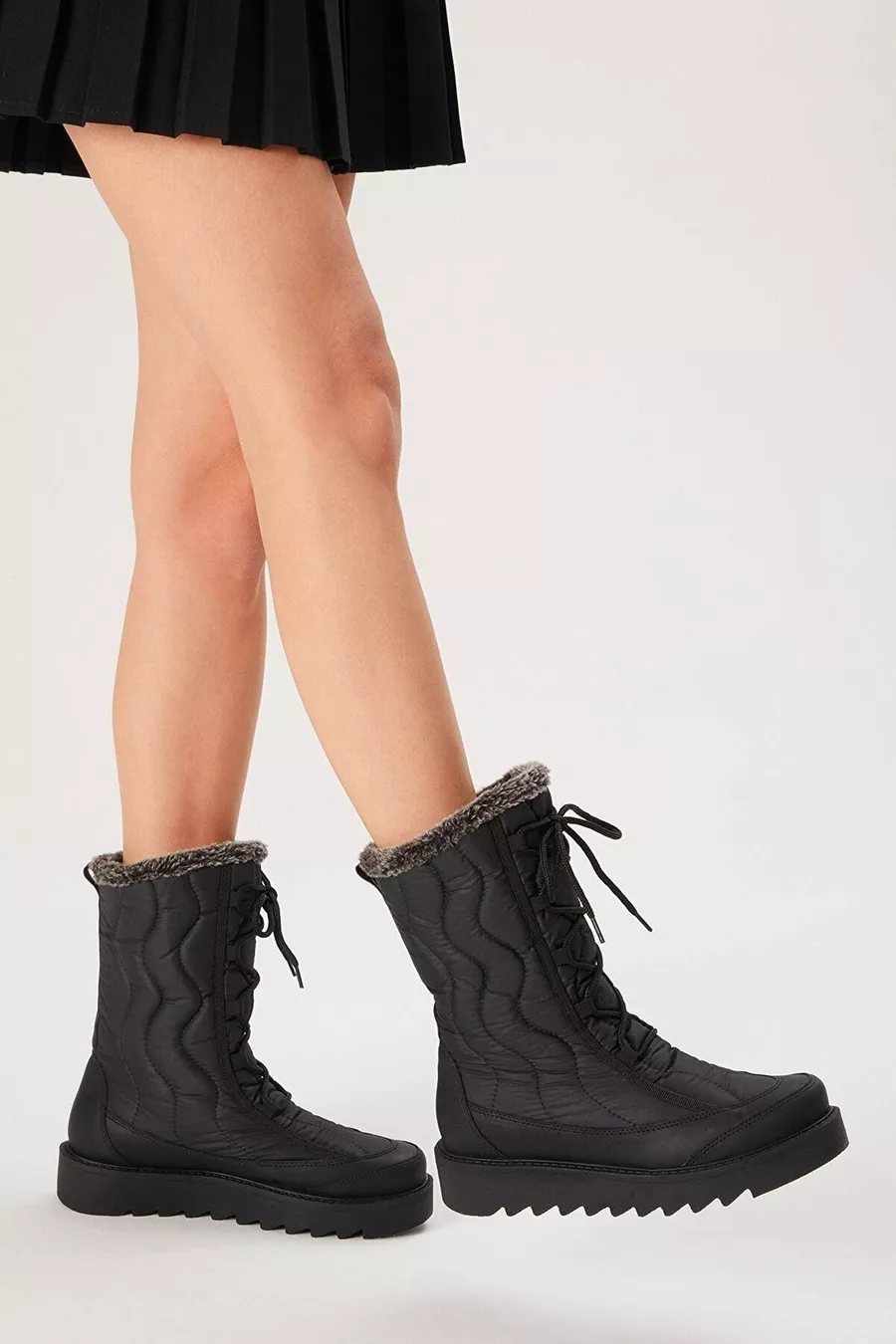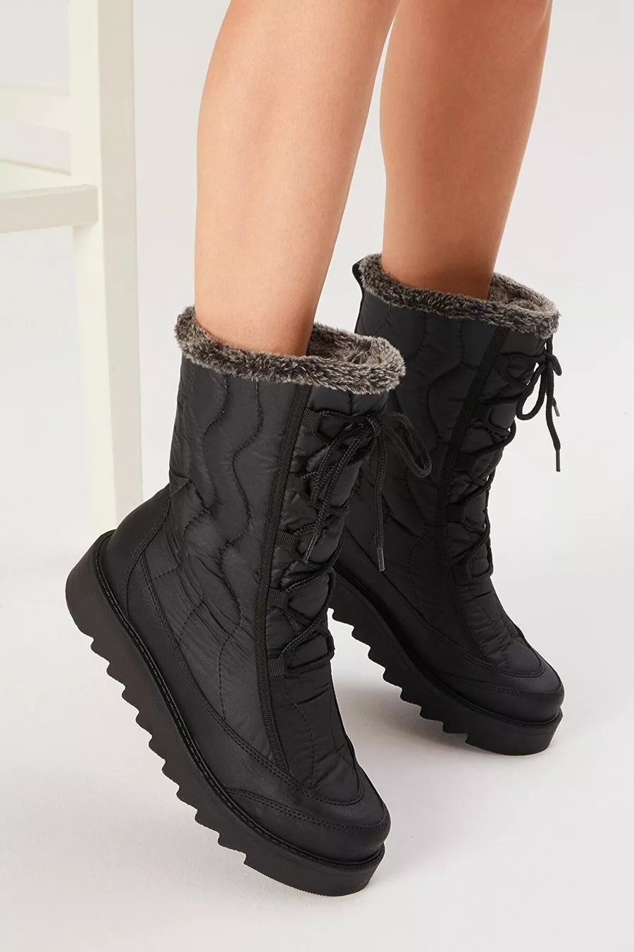 Femmes Noir Sans lacets Imperméable Doublure En Peluche Garder Au Chaud Bottes De Neige Modèle À Lacets Ornementaux