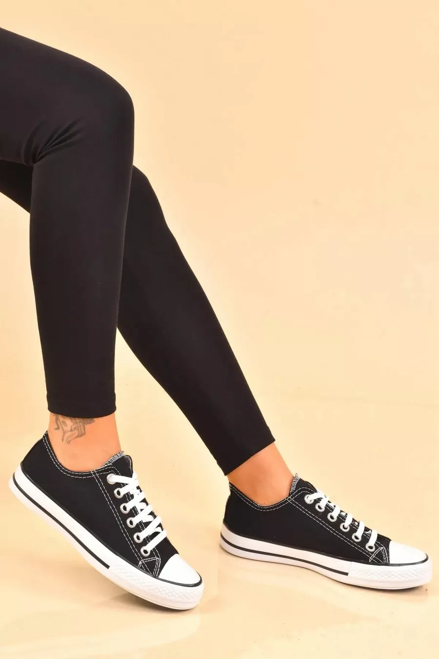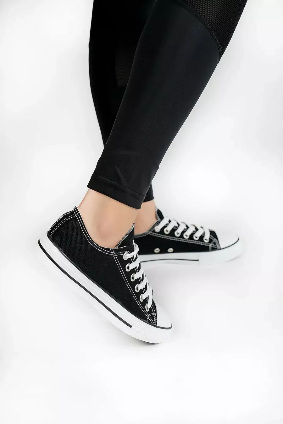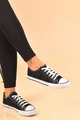 Femmes Noir Lin Lacets Casual Confortable Flexible Orthopédique Semelle Plate Tissu Chaussures Sneaker