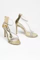 Femmes Or Métallisé Double Sangle Fermeture Éclair Arrière Cheville Élégant Drop Stone Plate-forme Chaussures de Soirée