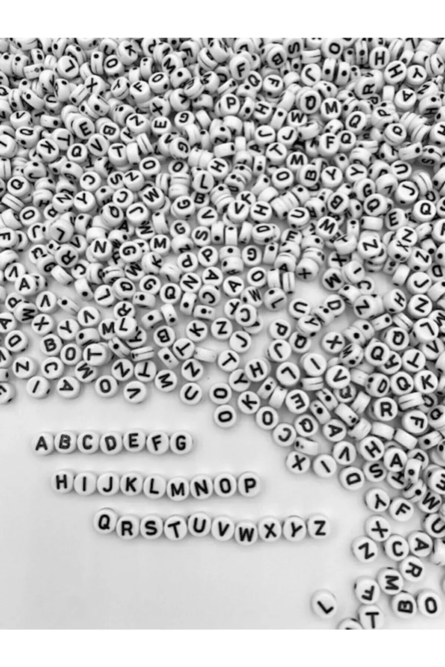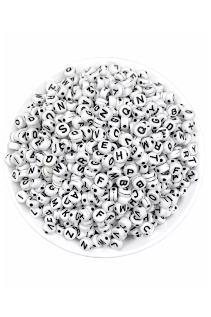 g de perles plates blanches mm avec lettres noires, perles alphabet ovales aplaties ( g, ~ pièces)