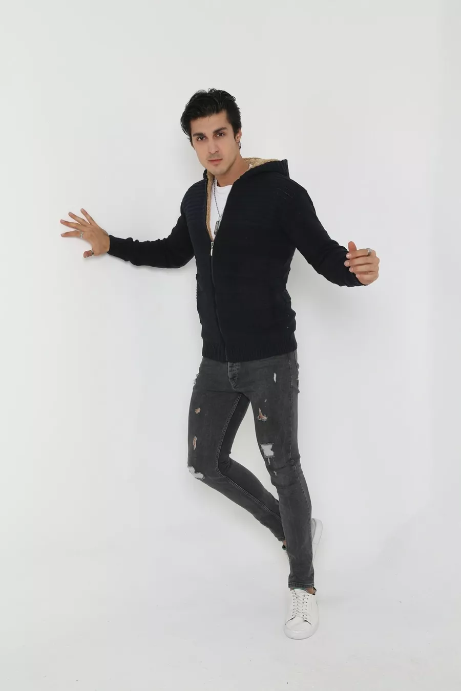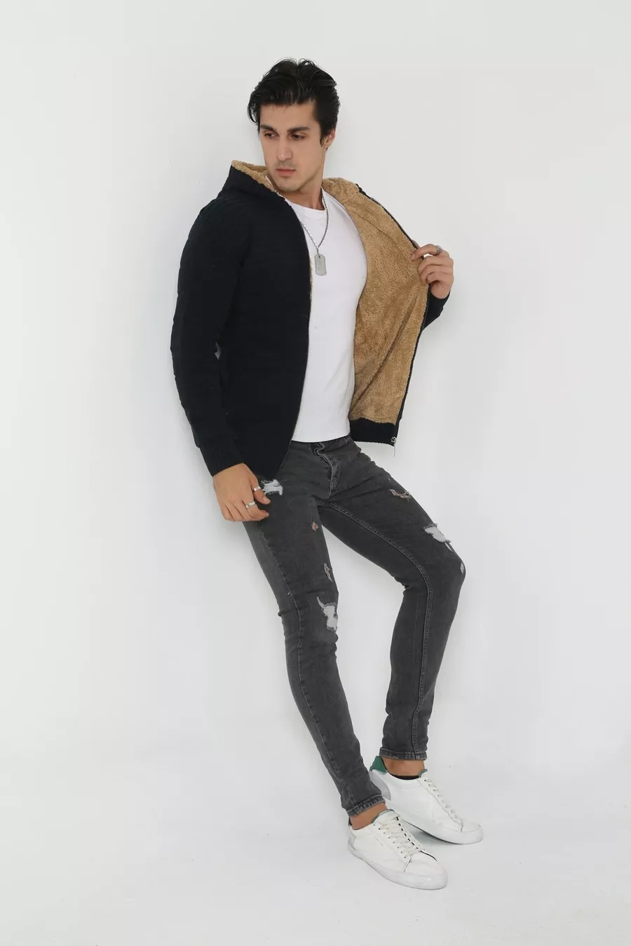 Gilet de sport à capuche pour homme avec doublure en fourrure