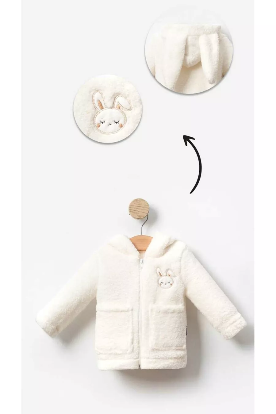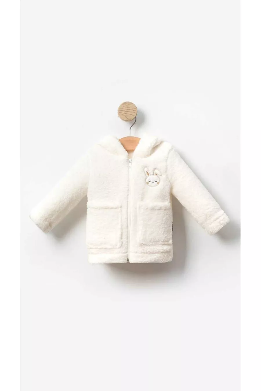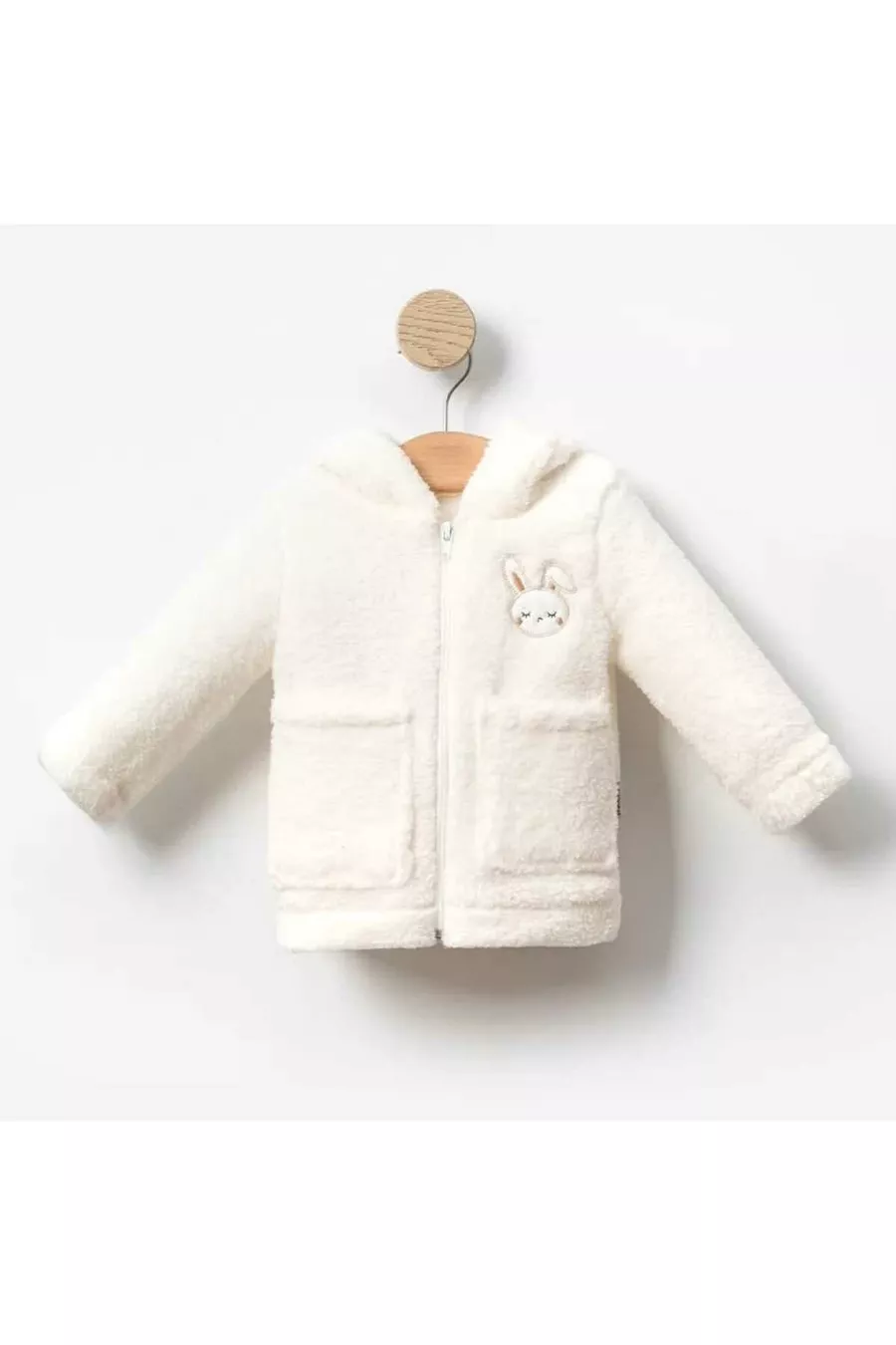 Gilet d'hiver en peluche Welsoft pour bébé fille avec broderie de lapin, poches et fermeture éclair - Blanc