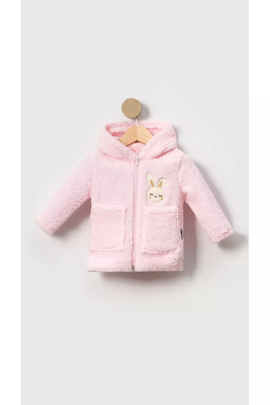 Gilet d'hiver en peluche Welsoft pour bébé fille avec broderie lapin, fermeture éclair et poches - Rose