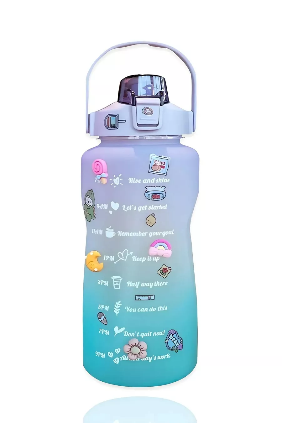 Gourde de motivation 2 litres avec autocollant et figurine en cadeau ! Gourde de sport Tritan couleur douce