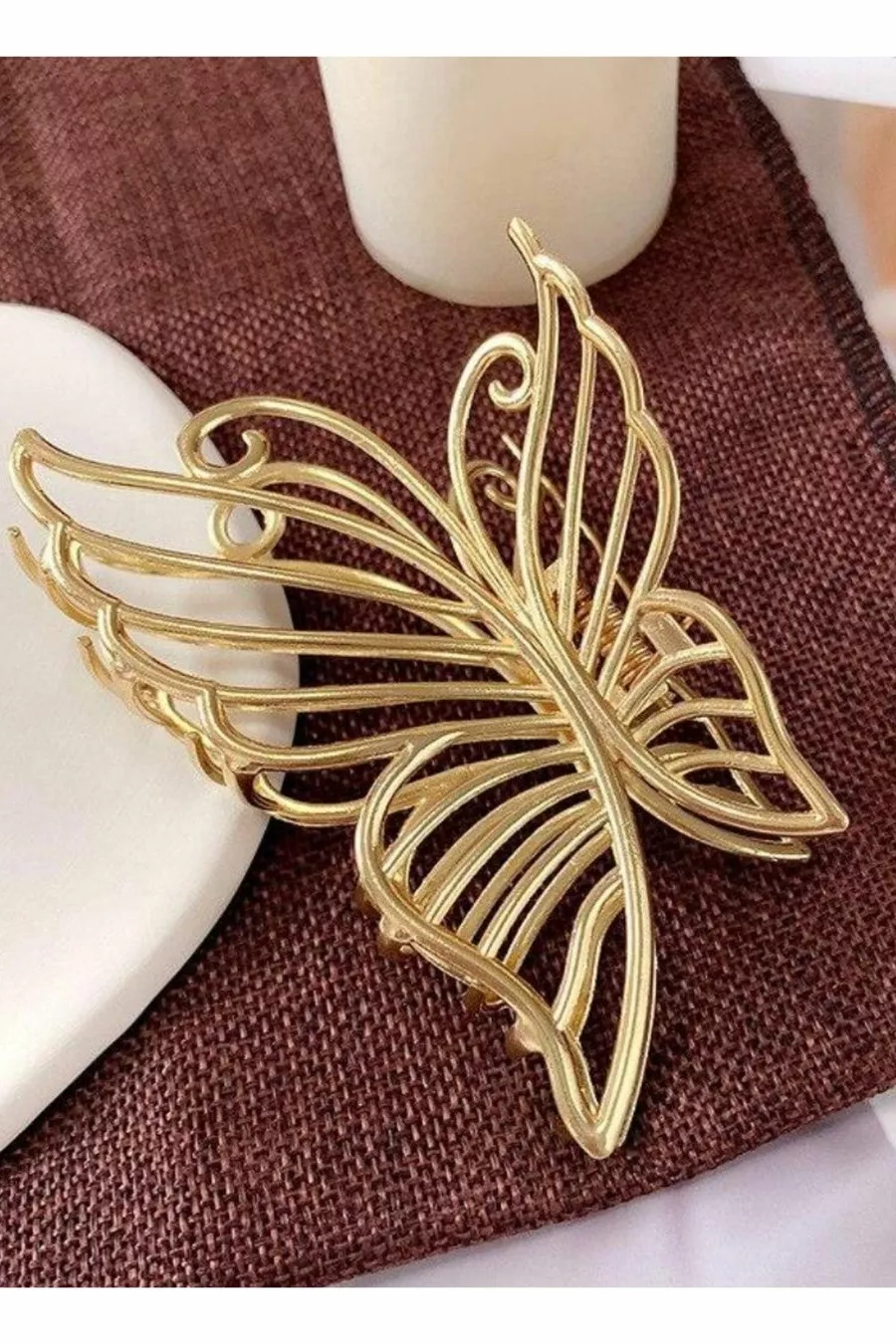 Grande pince à cheveux papillon en métal