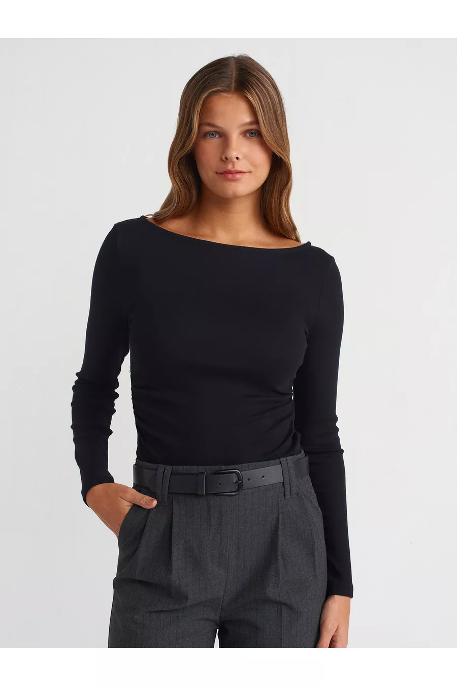 Haut à col bateau froncé - Noir